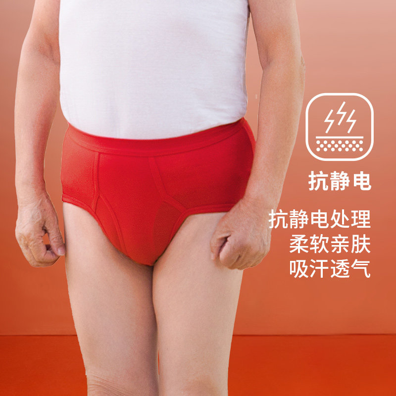 浪莎本命年男士内裤男纯棉三角裤全棉结婚大红色鸿运红短裤头属马