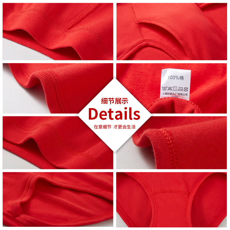 天浪莎本命年男士内裤男纯棉三角裤全棉结婚大红色鸿运红短裤头属马