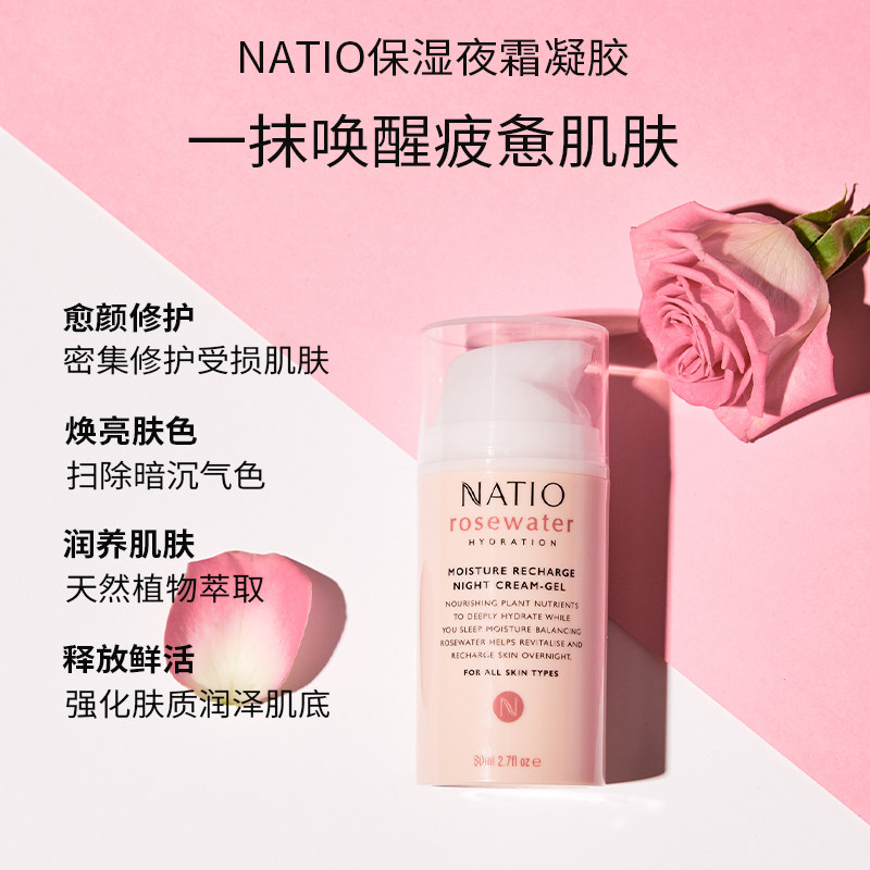 天猫NATIO娜缇欧玫瑰保湿面霜夜霜晚霜凝胶滋润紧致抗老80ml修护澳洲