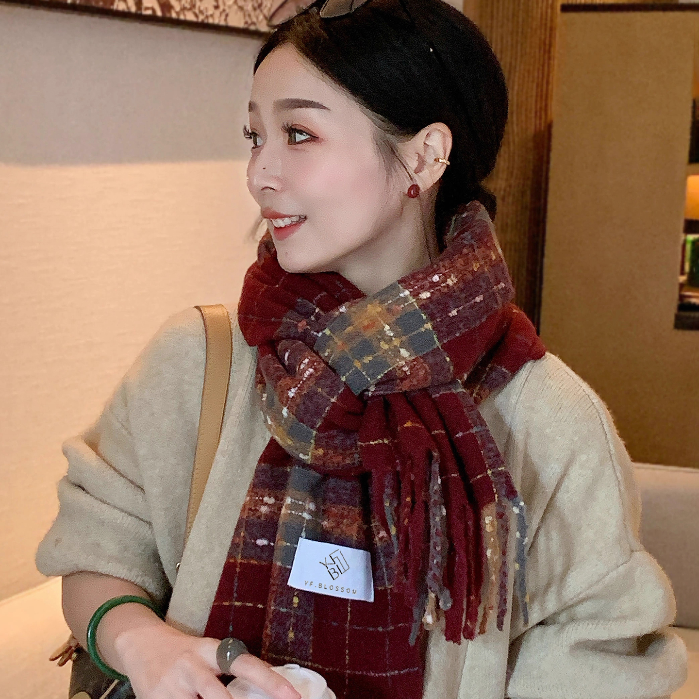 淘宝格纹围巾女秋冬季2025新款韩版气质百搭流苏高级感围脖加厚保暖潮