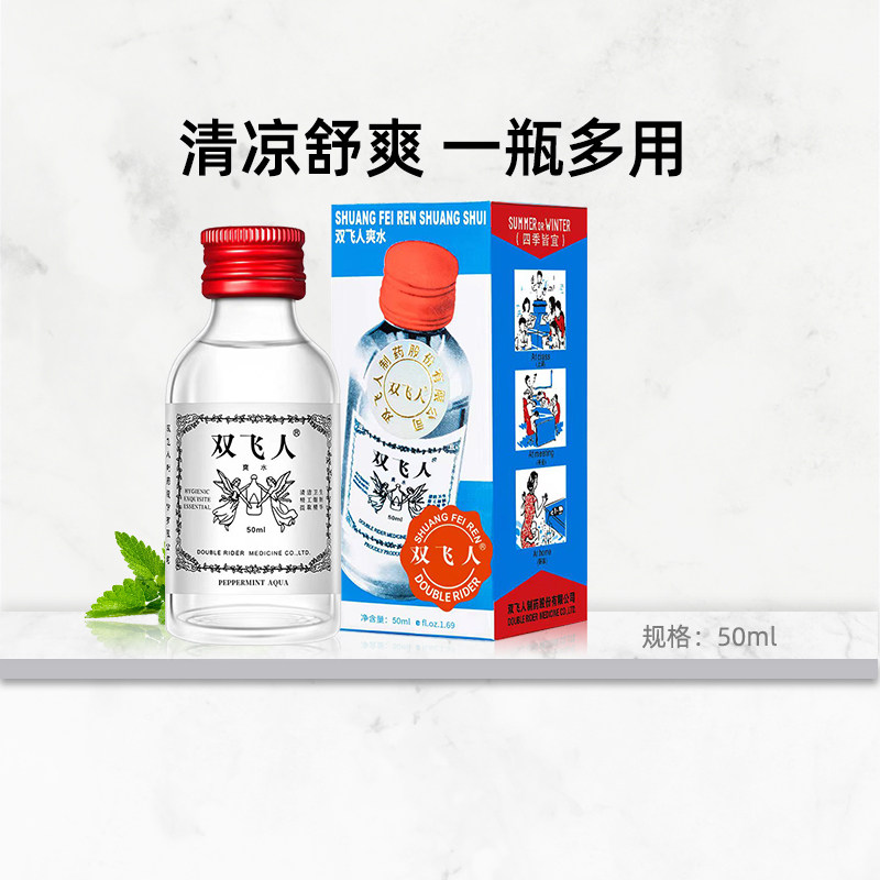 天猫双飞人清凉薄荷爽水舒爽提神晕车防困旅行劳顿花露水50ml 2支