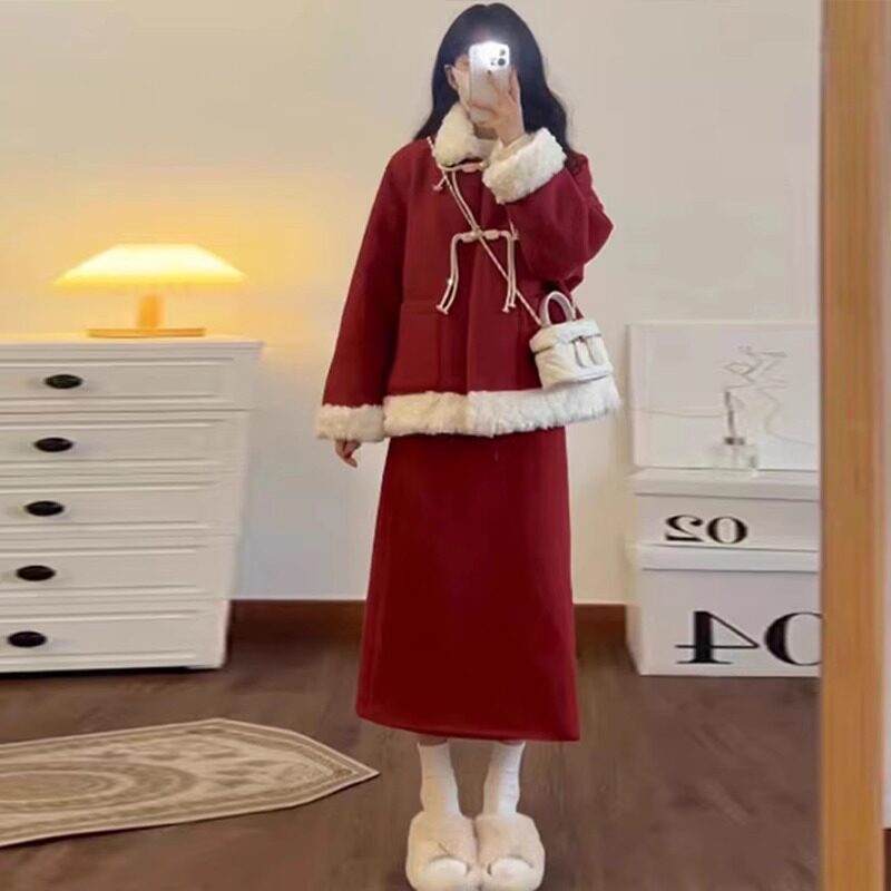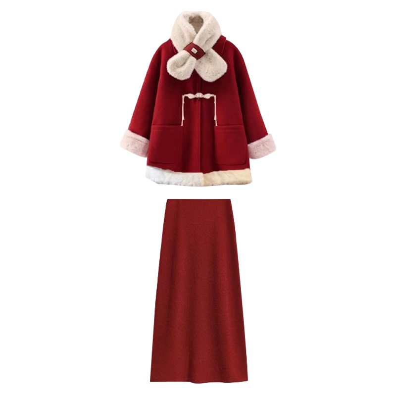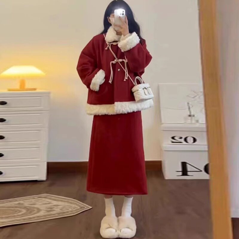 淘宝孕妇套装2026新款秋冬时尚洋气时髦过年红新中式上衣半身裙两件套