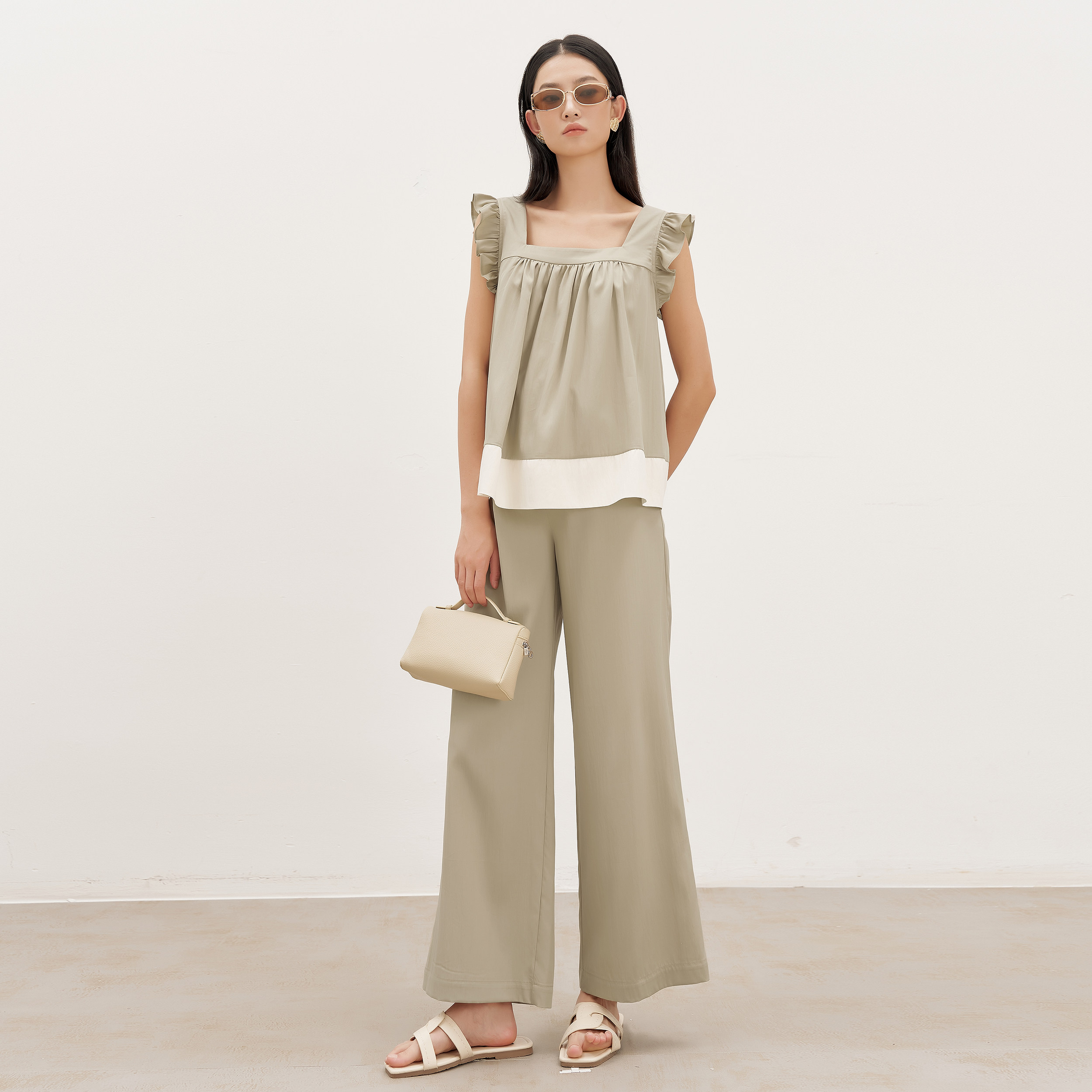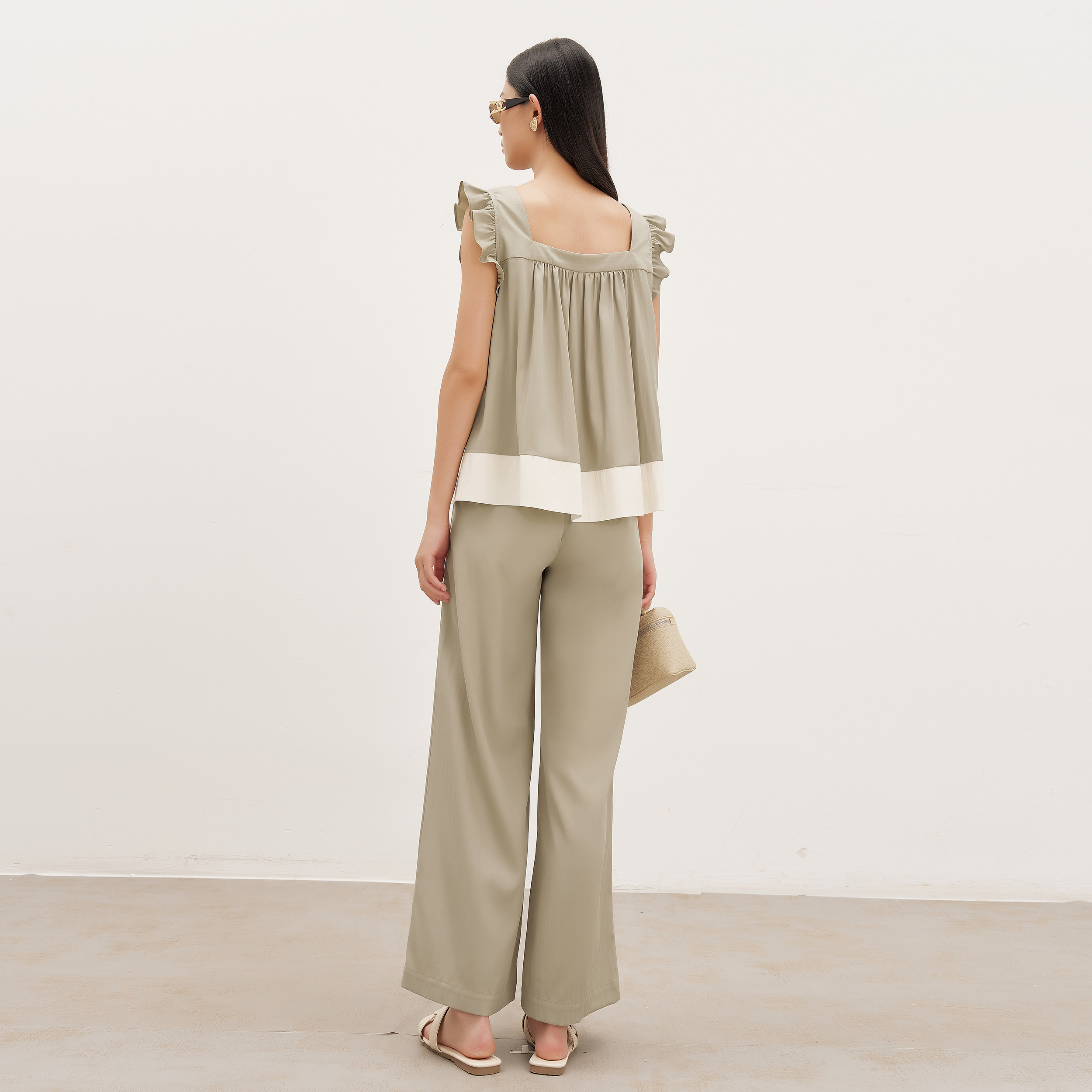 BELLYWEAR 2025夏季新款孕妇装两件套,专为追求舒适与时尚并重的孕妈设计。上衣采用轻盈透气的小飞袖剪裁,巧妙修饰手臂线条,搭配宽松高腰版型,温柔包裹孕肚,尽显优雅高级感。下装为高腰9分裤,弹性腰头设计不勒腹部,贴合身形又方便活动。整体选用亲肤环保面料,清爽透气,适合炎热夏日。简约配色与利落剪裁相得益彰,轻松打造知性温柔的孕期穿搭,无论是日常出行还是职场通勤,都能展现孕妈的独特魅力与自信风采。
