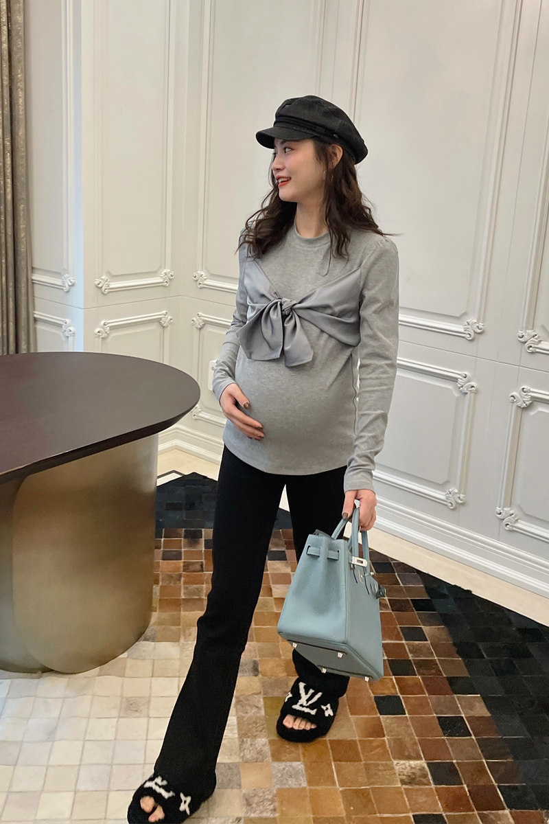 淘宝LeoMami孕妇蝴蝶结长袖打底衫T恤春秋设计感修身洋气别致上衣ins