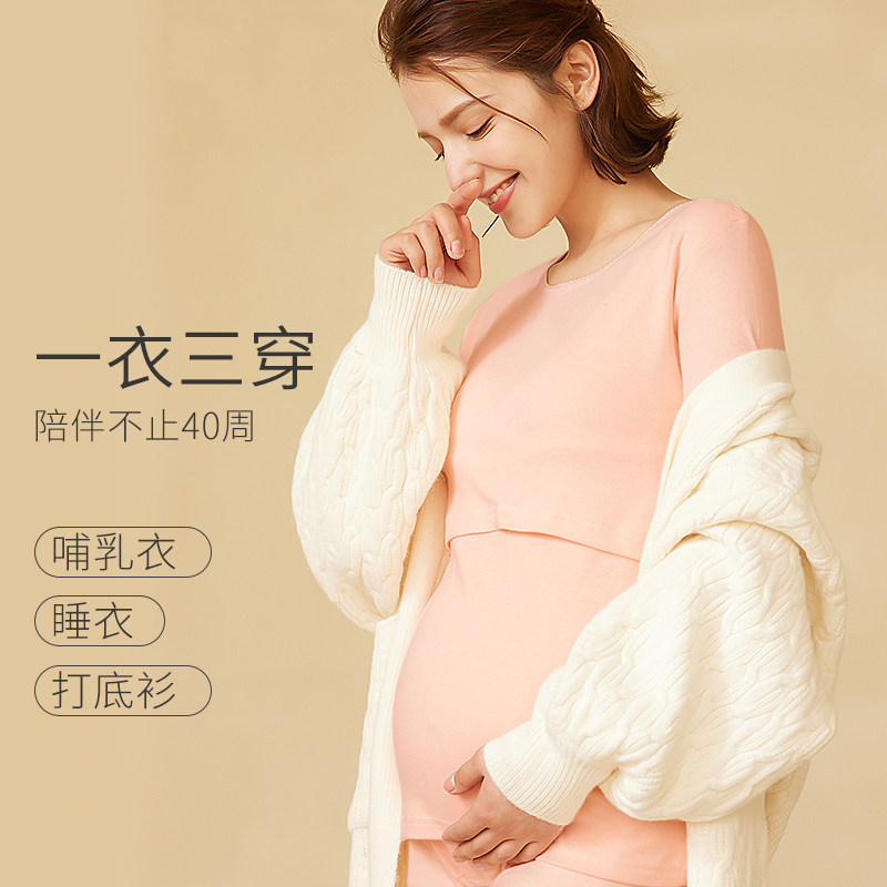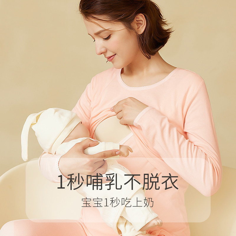 淘宝纯棉哺乳秋衣单件上衣孕妇喂奶睡衣秋冬款打底衣内搭保暖内衣套装