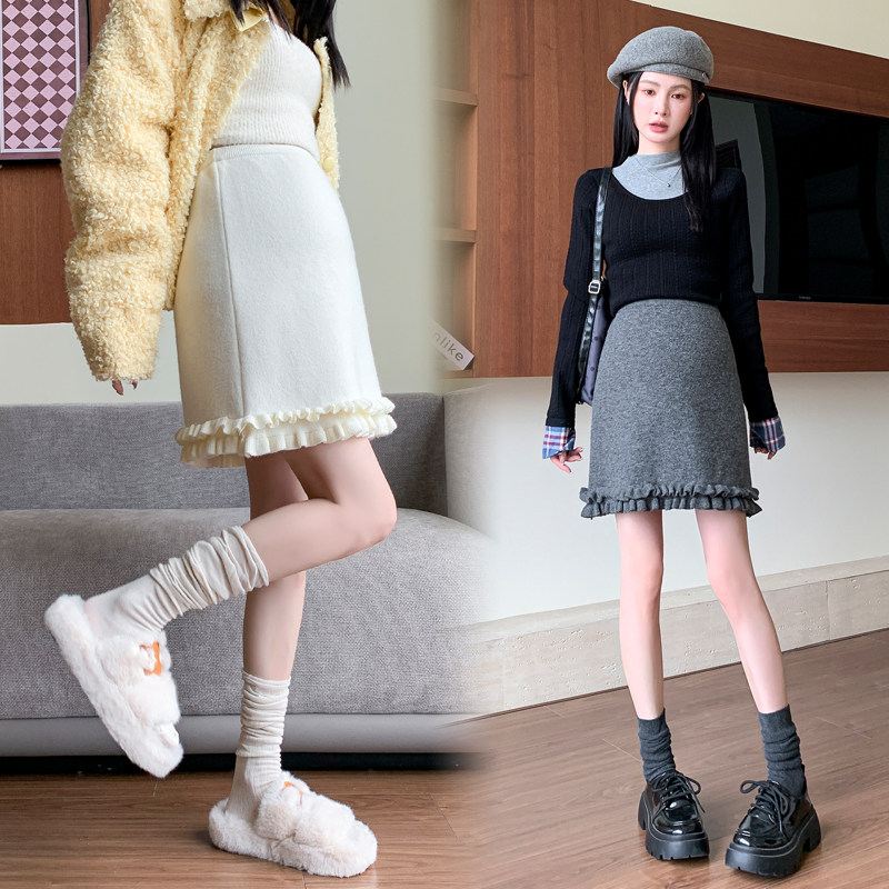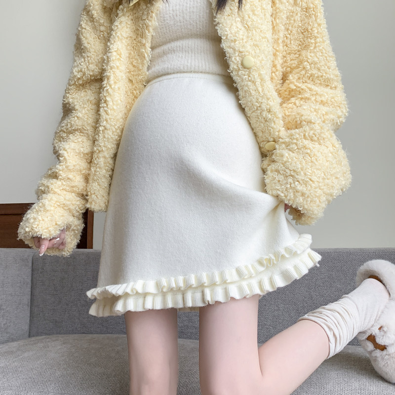 淘宝大码孕妇装秋冬新款针织羊毛木耳边半身裙休闲显瘦包臀A字裙200斤