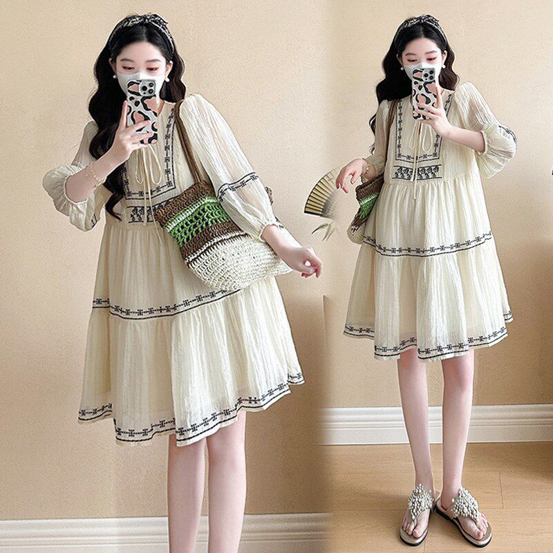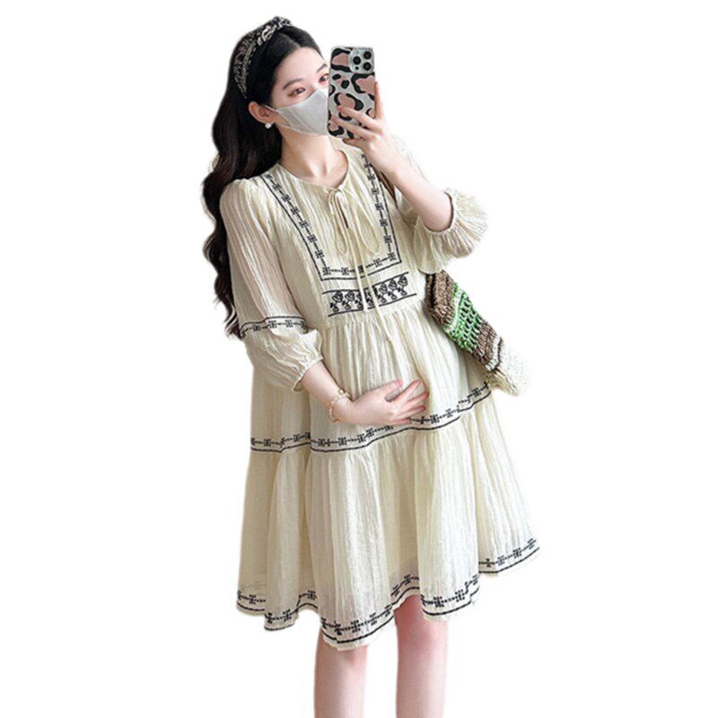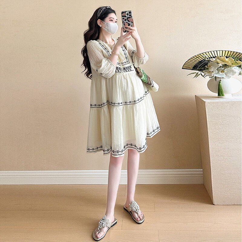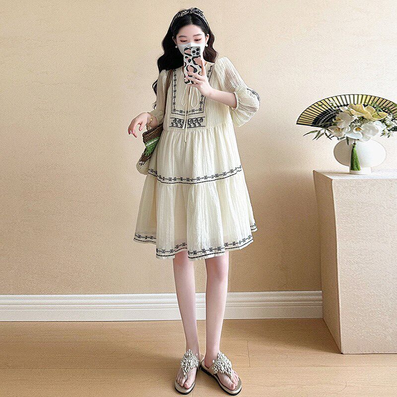 淘宝孕妇装夏天裙子中长款小个子七分袖A字裙宽松减龄新款孕期连衣裙