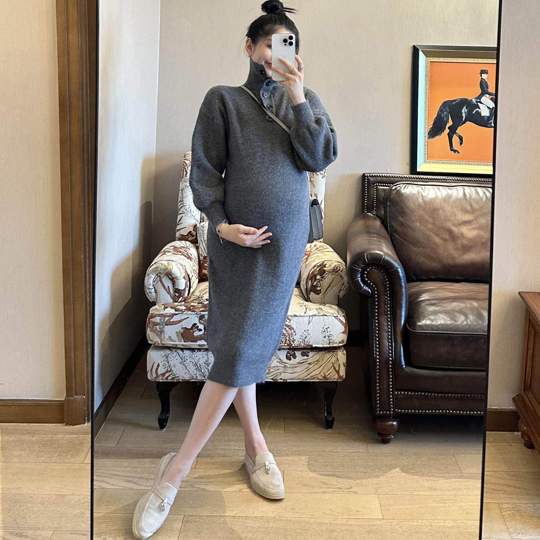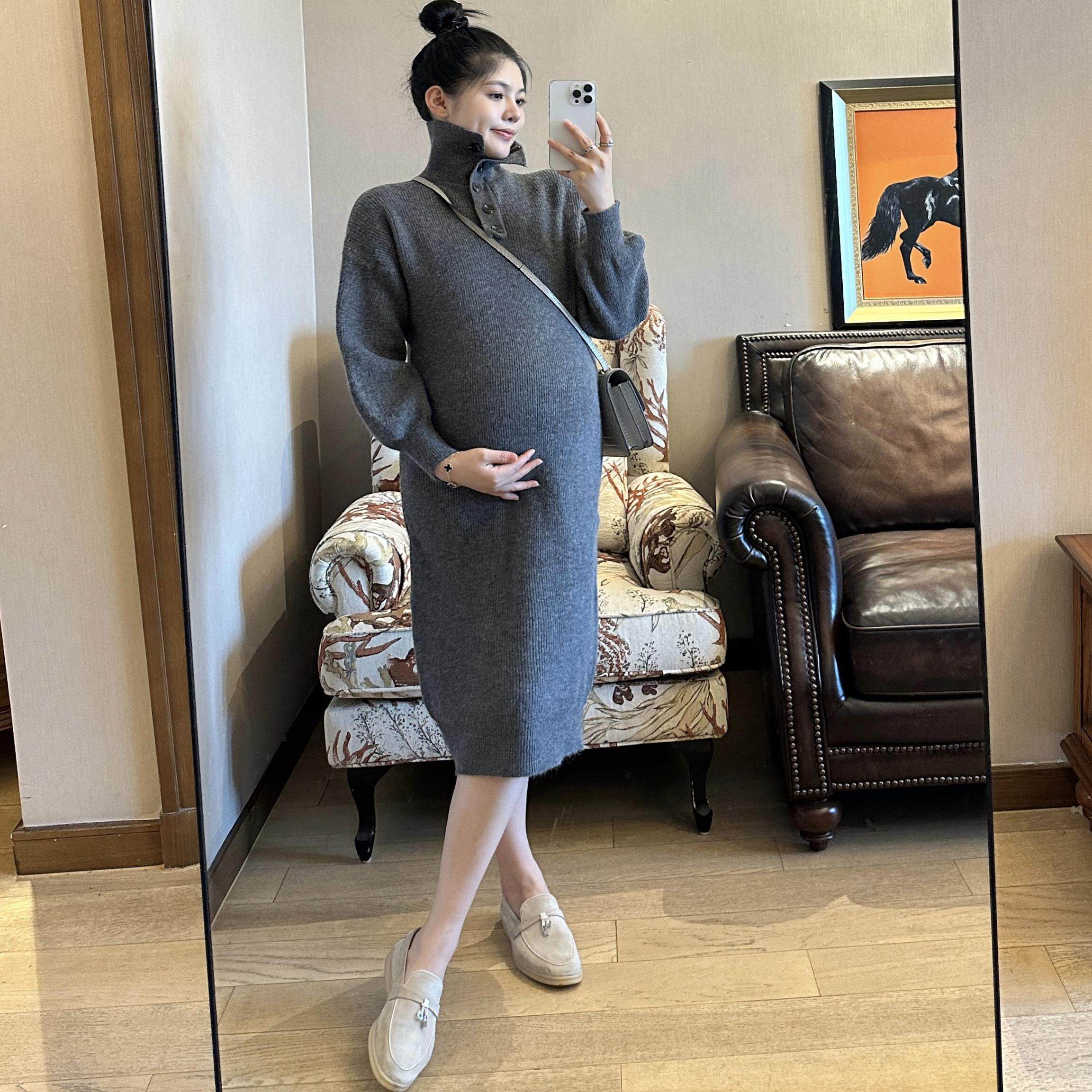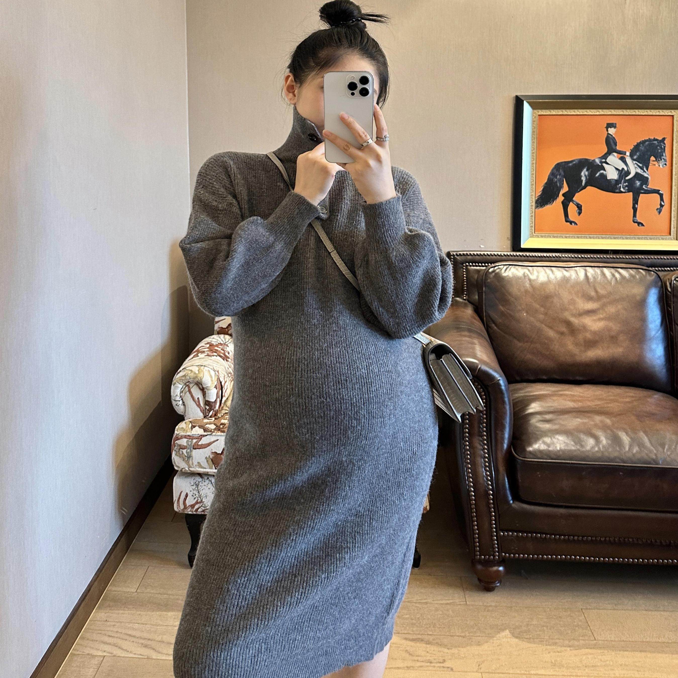 淘宝PEIPEI佩佩孕妇装秋冬高端日常针织连衣裙宽松外穿翻领打底毛衣裙