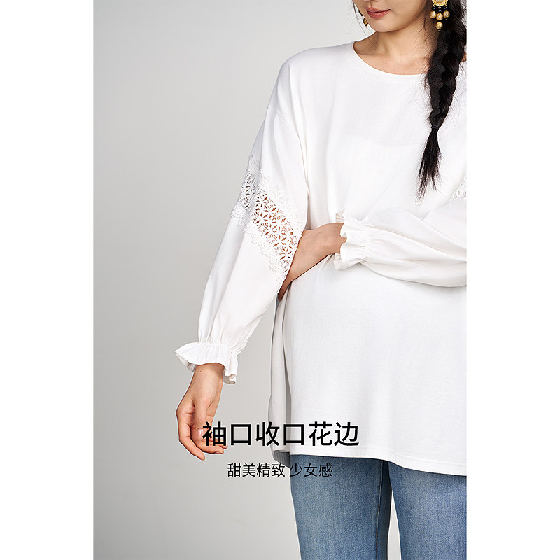 天猫快乐屋孕妇针织衣2026新款孕妇上衣长款法式孕妇装春款蕾丝上衣春