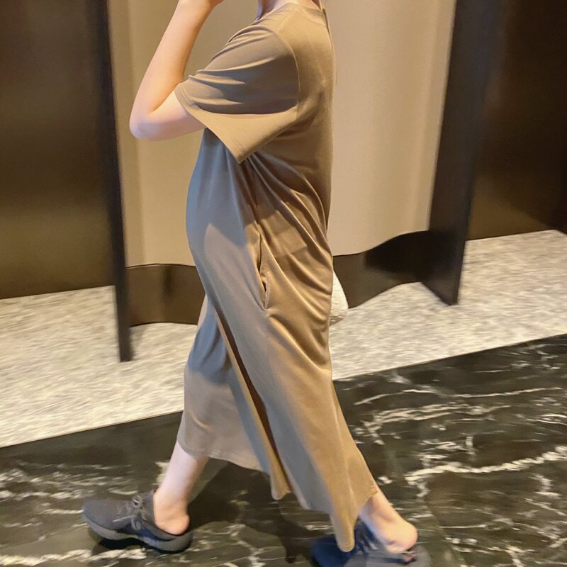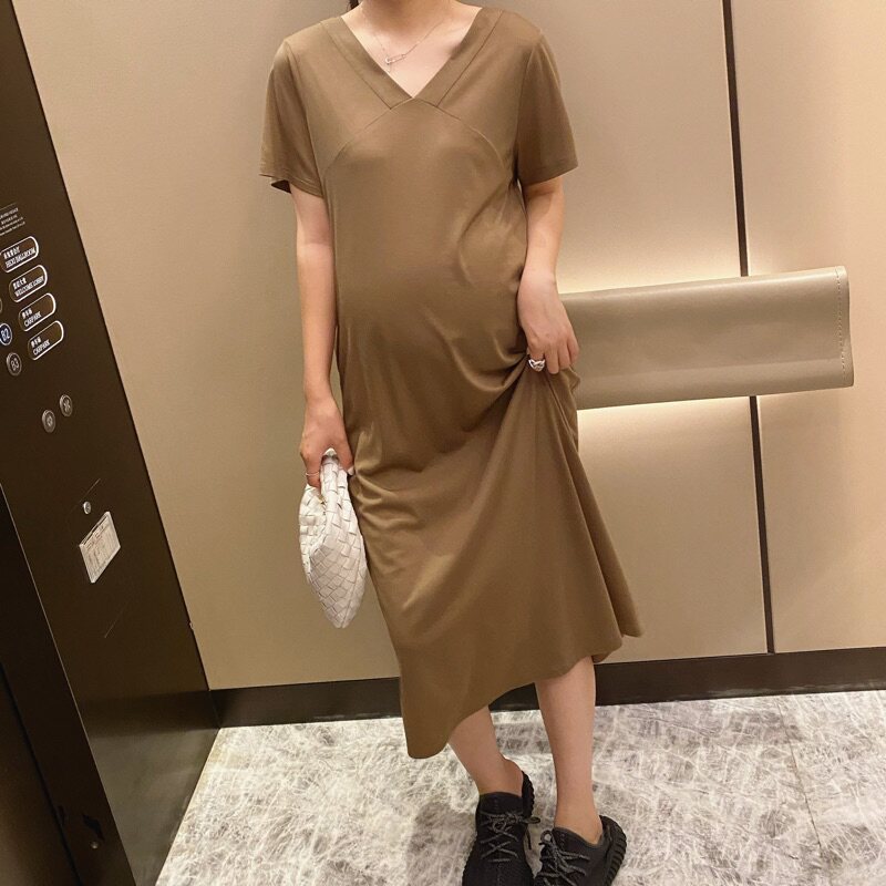 淘宝【LeoMami】孕妇连衣裙夏时尚后开叉宽松显瘦中长款V领裙子孕妇装