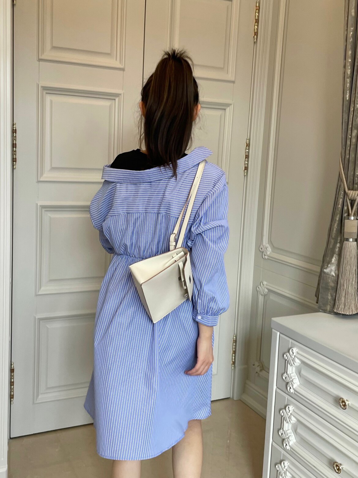 【LeoMami】高端孕妇装春季系列,以时尚设计感重新定义孕期优雅。这款露肩假两件条纹衬衫连衣裙,巧妙融合经典条纹元素与现代廓形剪裁,视觉拉长身形,凸显知性气质。露肩设计增添一抹柔美与轻盈,假两件层次丰富却不显臃肿,兼顾舒适与美感。精选高弹亲肤面料,透气柔软,贴心呵护孕期肌肤。无论是日常出行、职场通勤还是休闲聚会,都能轻松驾驭,展现孕妈自信风采。LeoMami致力于为现代准妈妈打造兼具时尚与功能的高端孕装,让美丽从孕期开始绽放。