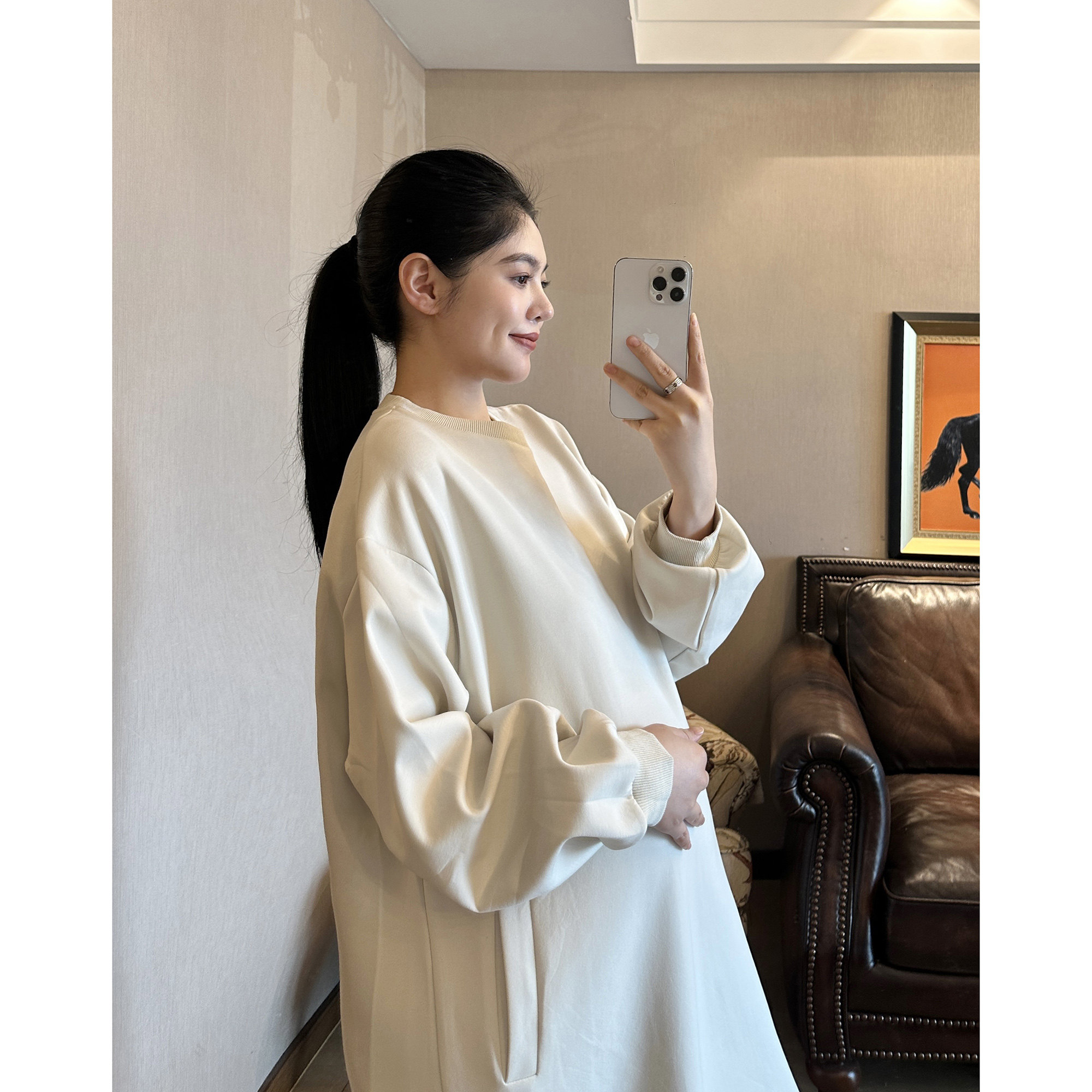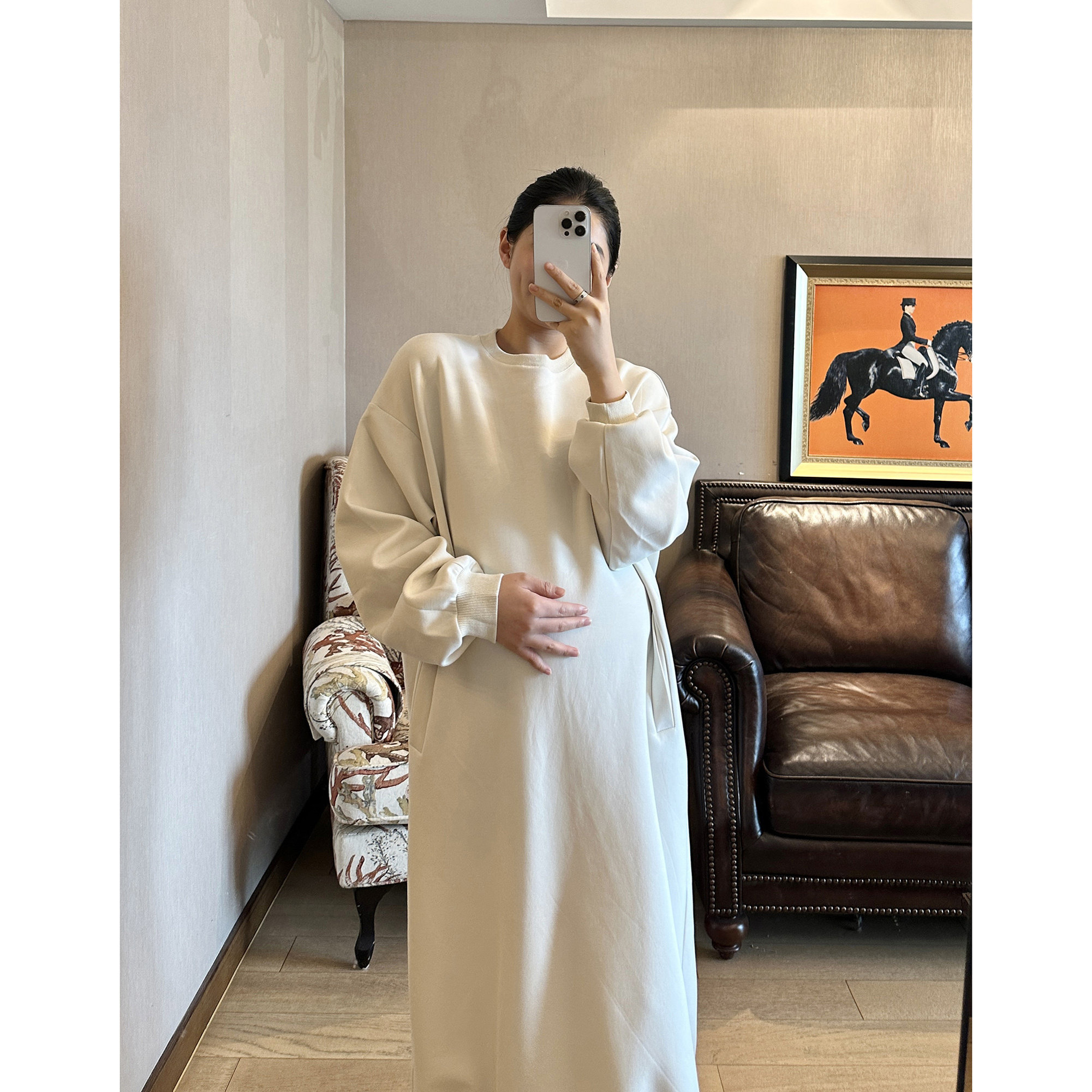 淘宝PEIPEI佩佩孕妇装2025新款纯色长款卫衣连衣裙春装外穿慵懒风宽松