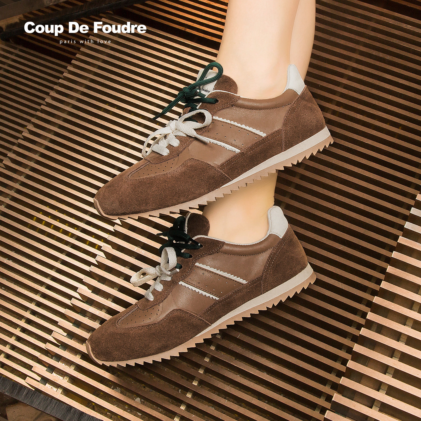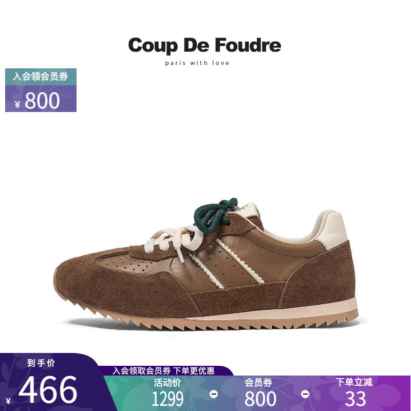 天猫CDF女鞋2025秋季新款时尚复古拼接休闲鞋简约双鞋带轻便德训鞋女