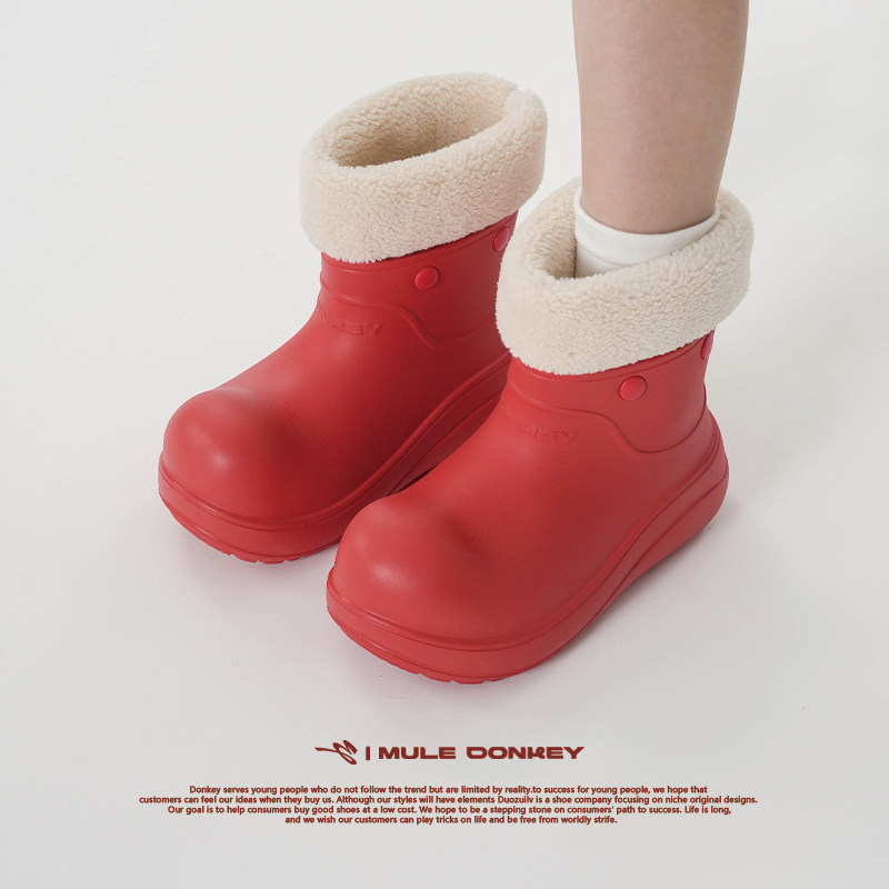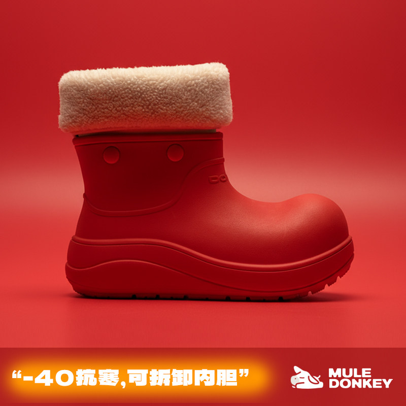 淘宝多嘴驴Donkey红色小丑鞋雪地靴女款冬季厚底雨靴防水短筒大头棉鞋