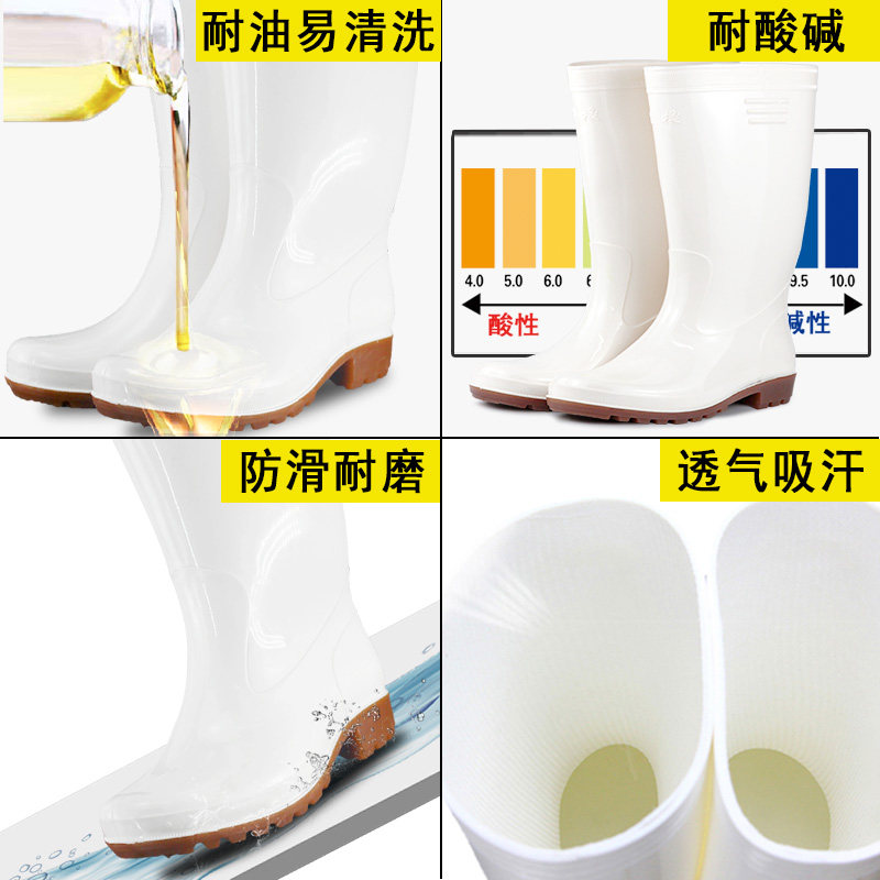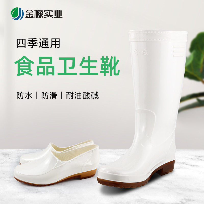 天猫金橡水鞋白色食品厂卫生靴工作雨鞋男防滑耐磨胶鞋女防油酸碱雨靴