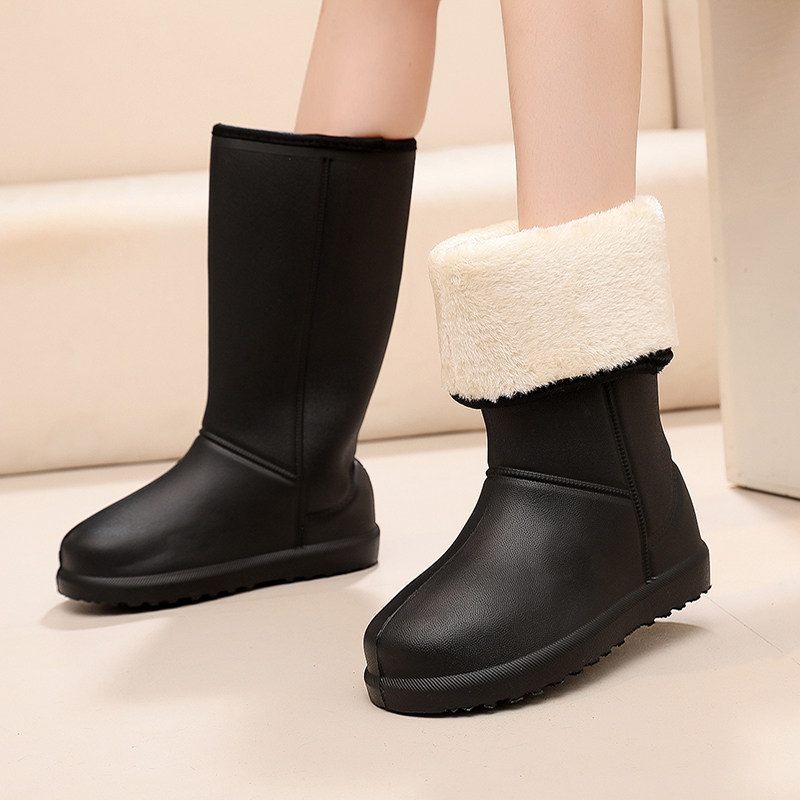 天猫冬季雨鞋加绒加厚女一体绒高筒水鞋轻便防滑长筒防水保暖棉雨靴