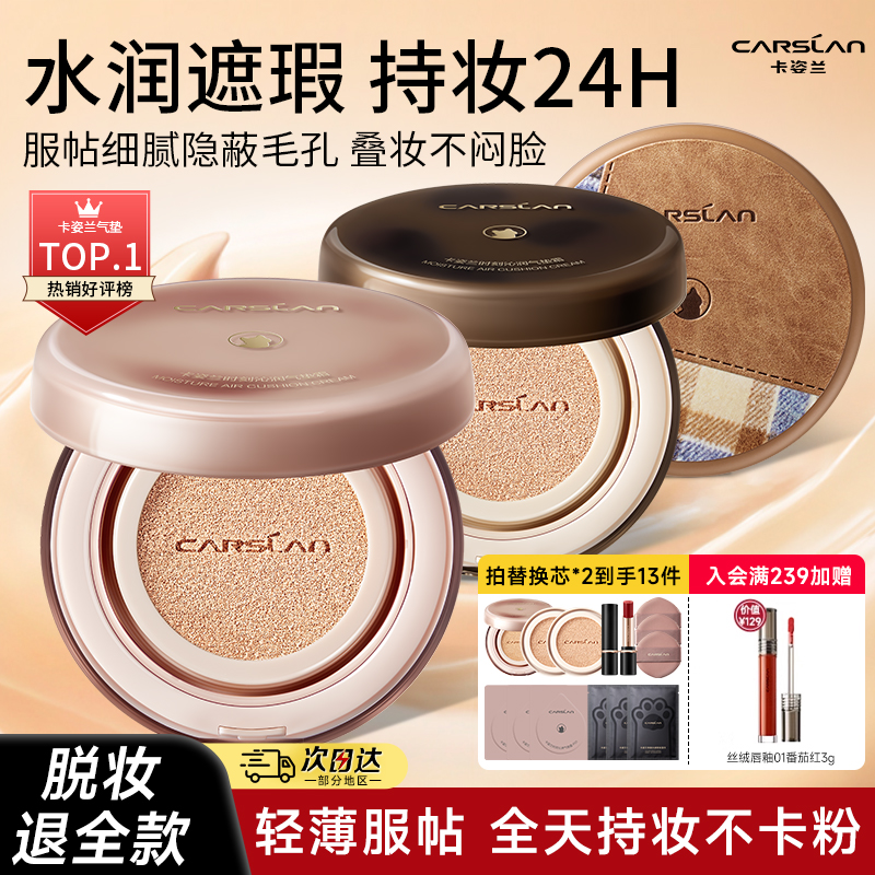 天猫卡姿兰气垫遮瑕持久不脱妆滋润粉底液bb霜小奶猫干皮油皮官方正品