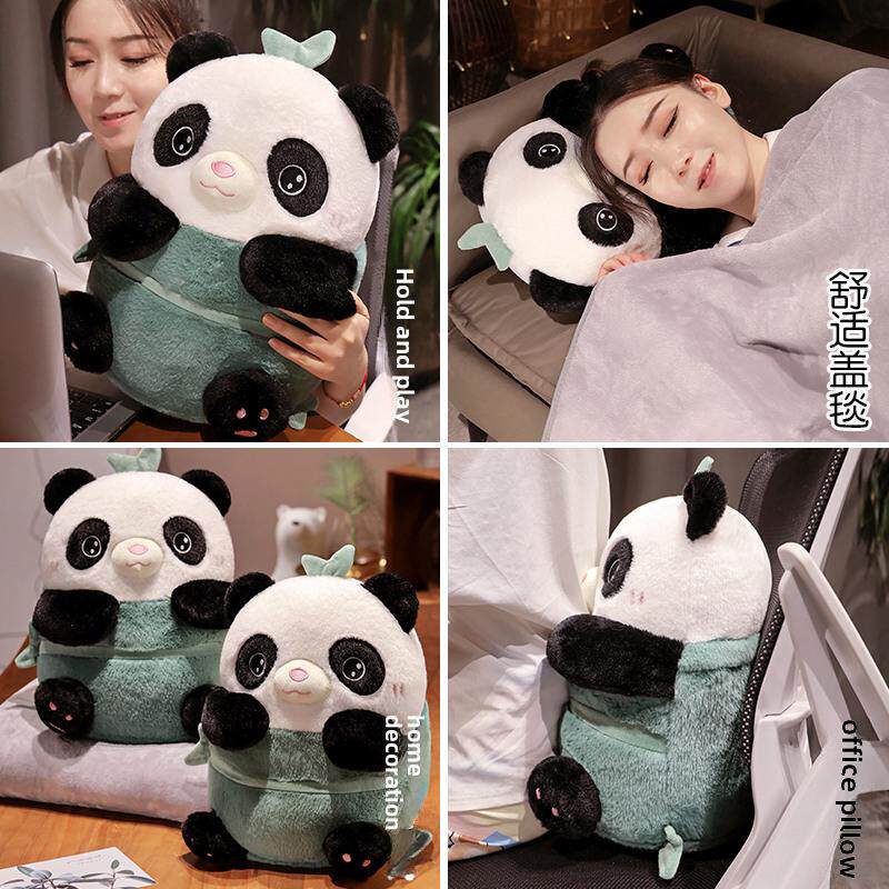 淘宝熊猫汽车毛毯枕头被两用办公室学生午睡枕头毯子女孩心午睡枕头