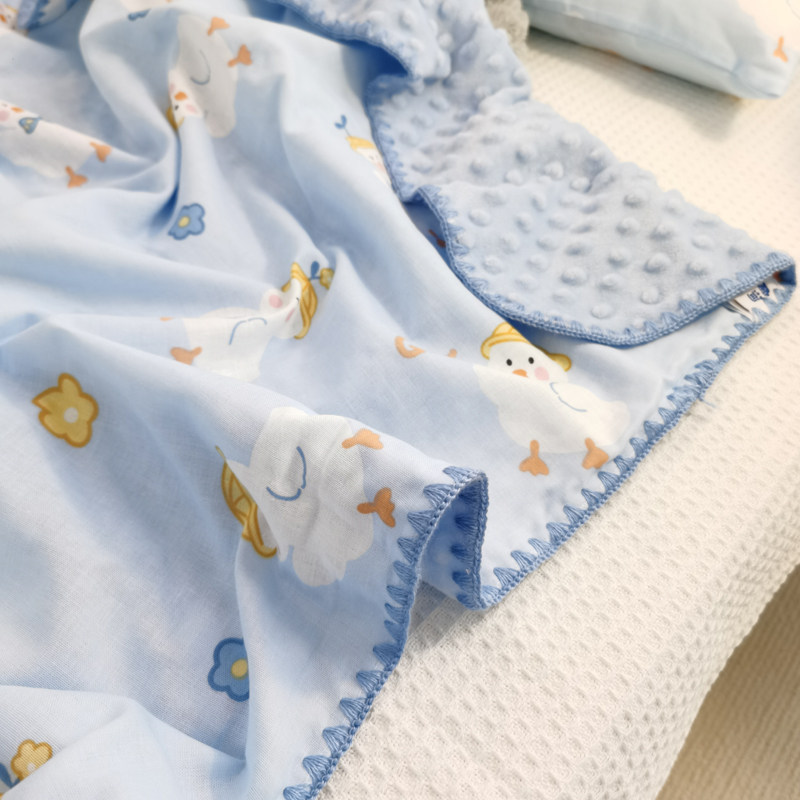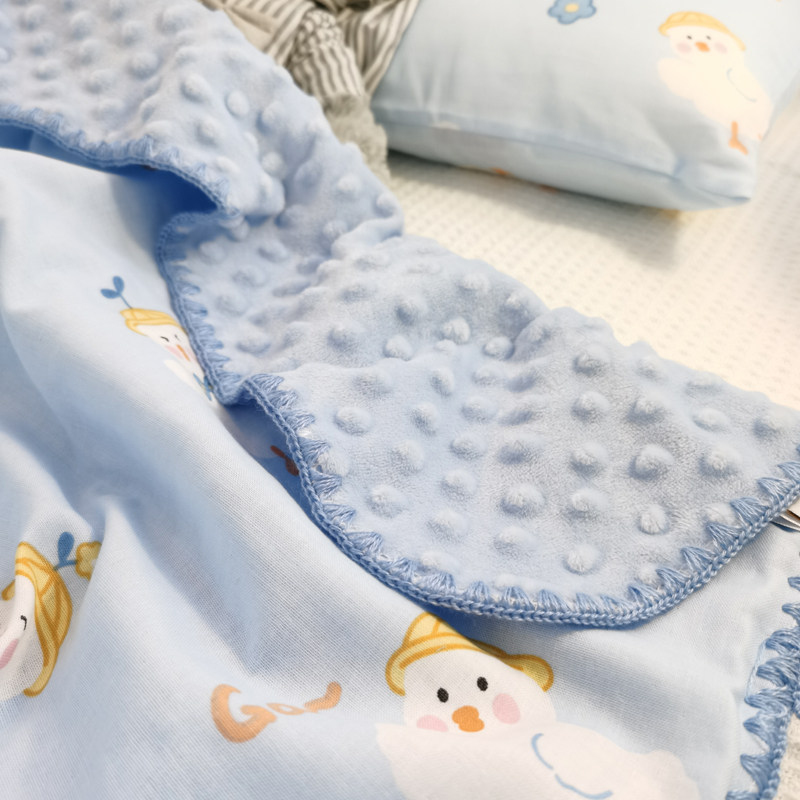 婴儿A类夏季安抚豆豆毯,专为新生儿及婴幼儿设计,采用符合国家A类安全标准的优质纯棉纱布面料,亲肤透气、柔软亲肤,呵护宝宝娇嫩肌肤。独特的立体豆豆绒设计,给予宝宝轻柔触感,起到安抚情绪、提升睡眠质量的作用。轻薄透气,适合夏季使用,亦可作为盖毯、推车毯或抱被,四季皆宜。易洗快干,不易起球变形,安全无刺激,是妈妈安心之选。无论是居家还是外出,这款小薄被都能为宝宝提供舒适安心的陪伴,是新生儿必备的理想用品。