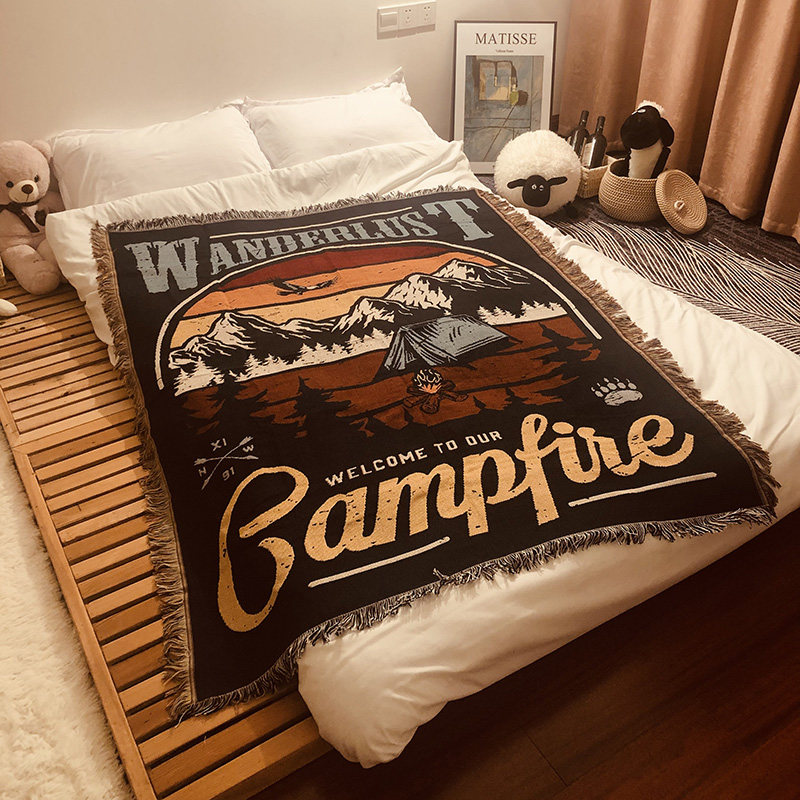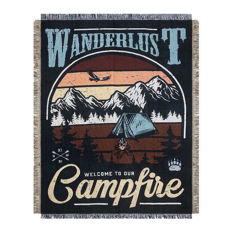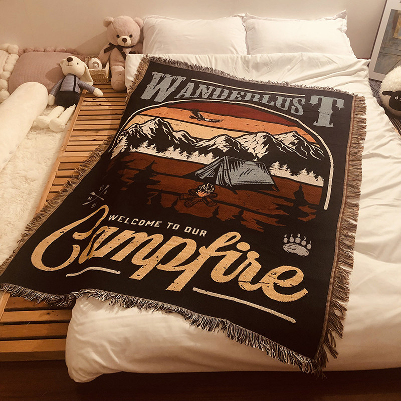 淘美国户外装饰毯毛毯盖毯沙发巾休闲毯 彩虹民族风图腾露营野餐毯