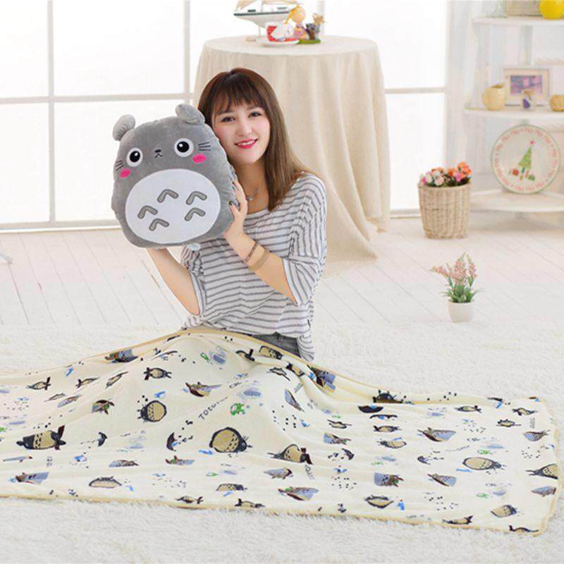淘宝龙猫枕头被两用毛毯暖手三合一加厚毛毯空调午睡枕头汽车坐垫
