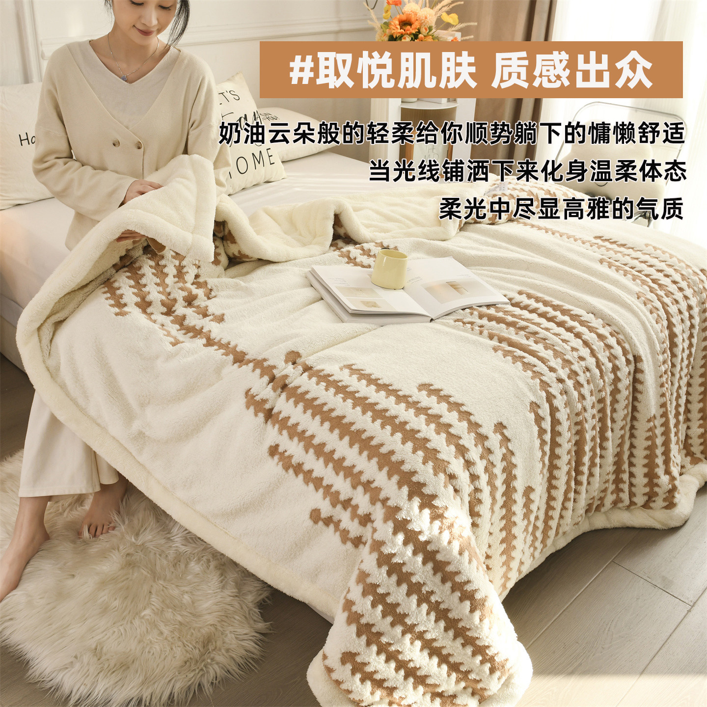 目野「金絮秋光」法式毛绒毯毛毯高级轻奢感加厚盖毯沙发搭毯家用