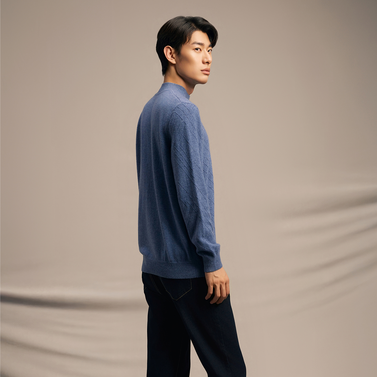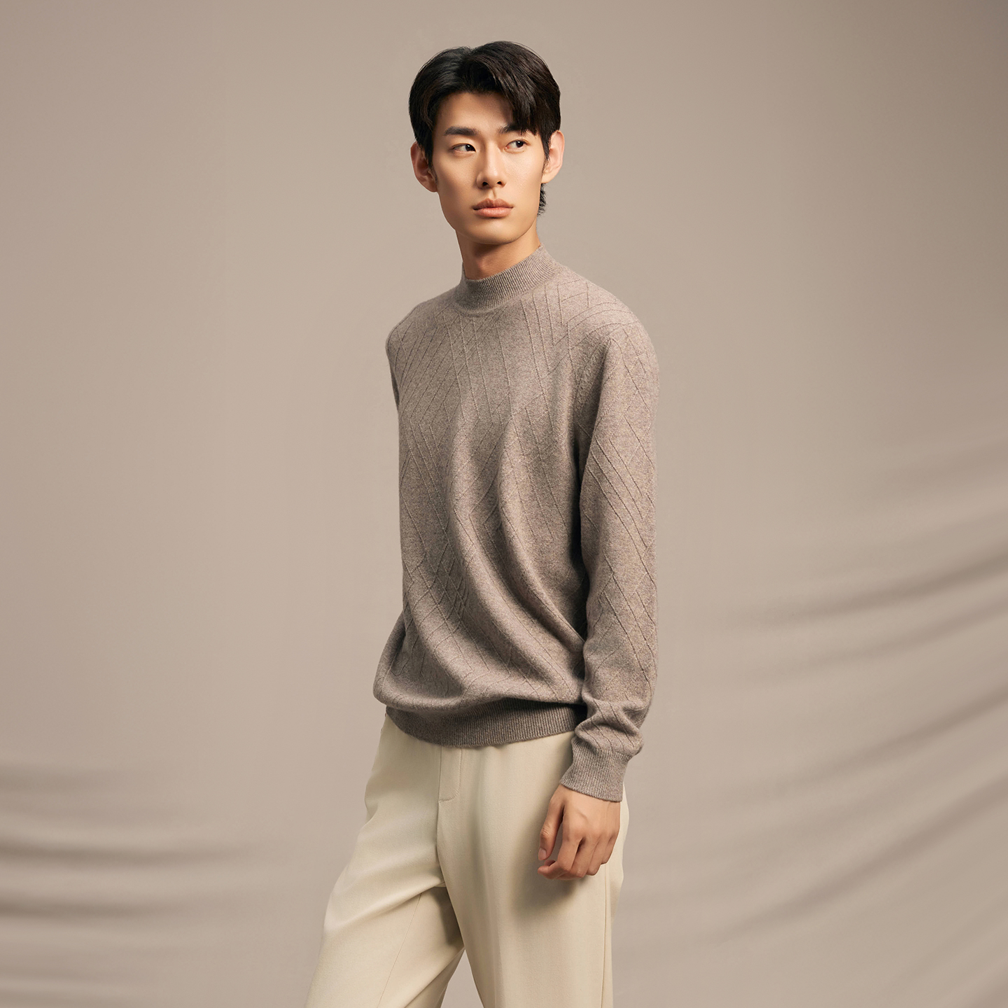 淘冬季新款100%纯山羊绒衫男士半高领马鞍肩宽松打底针织衫毛衣男款