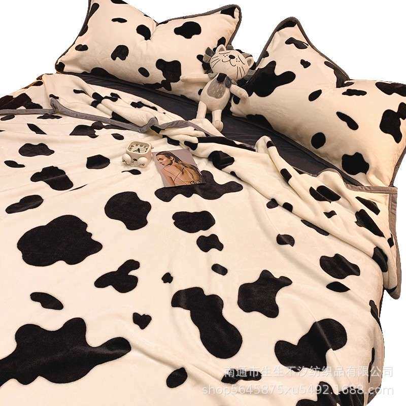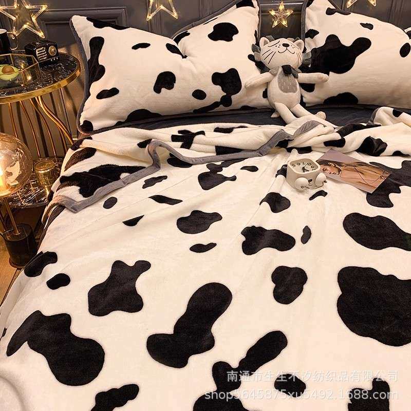 淘宝加厚牛奶珊瑚绒床单奶牛毛毯法兰绒面宿舍被单人午睡盖毯子三件套