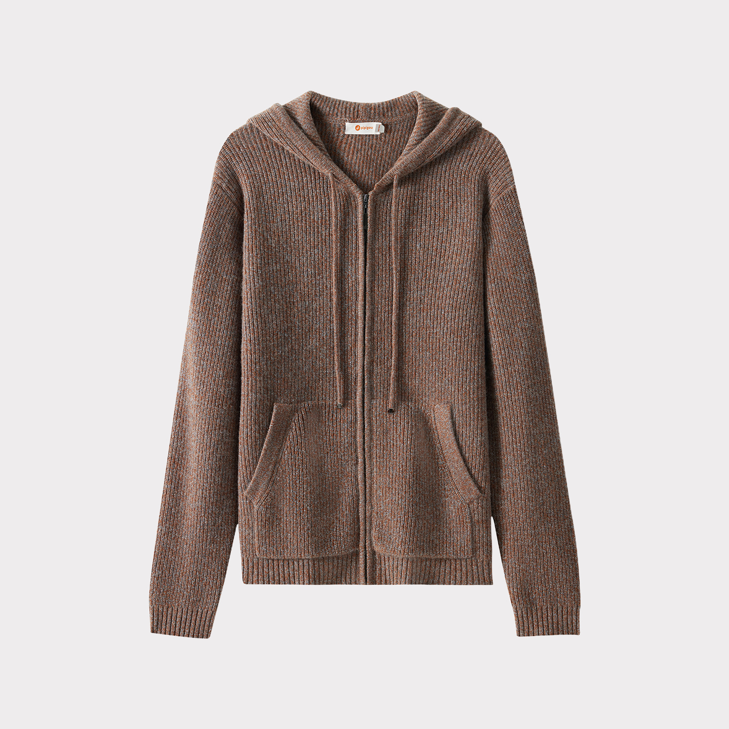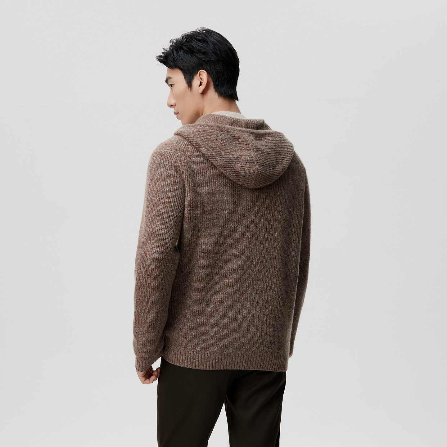 天猫皮皮狗25秋冬新款男士连帽拉链羊绒开衫复古花纱纹理厚实毛衣外套