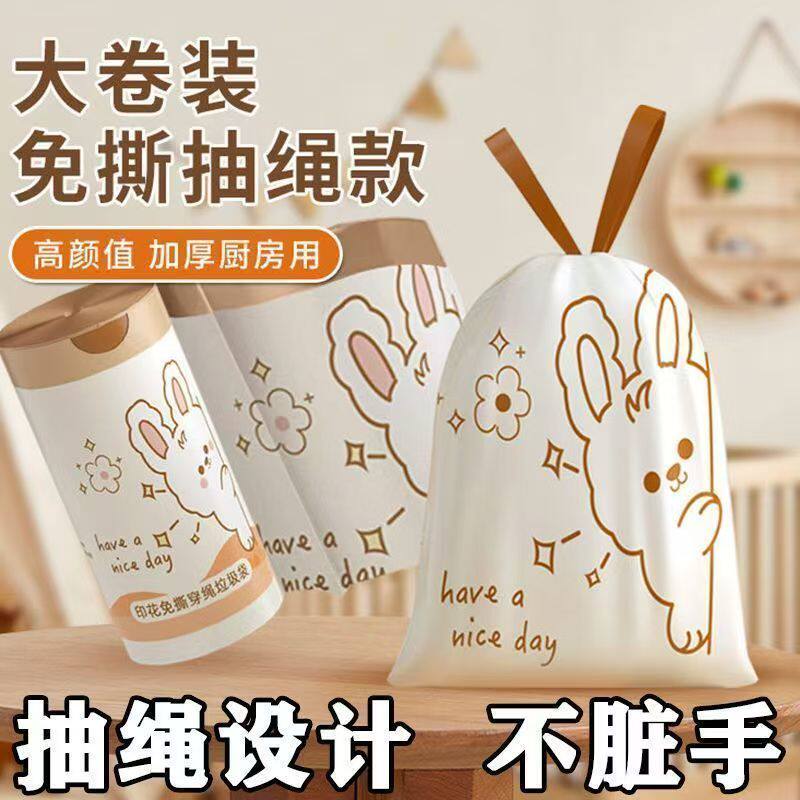 抽绳收口垃圾袋家用实惠装手提式垃圾桶塑料袋中大号加厚一次性袋