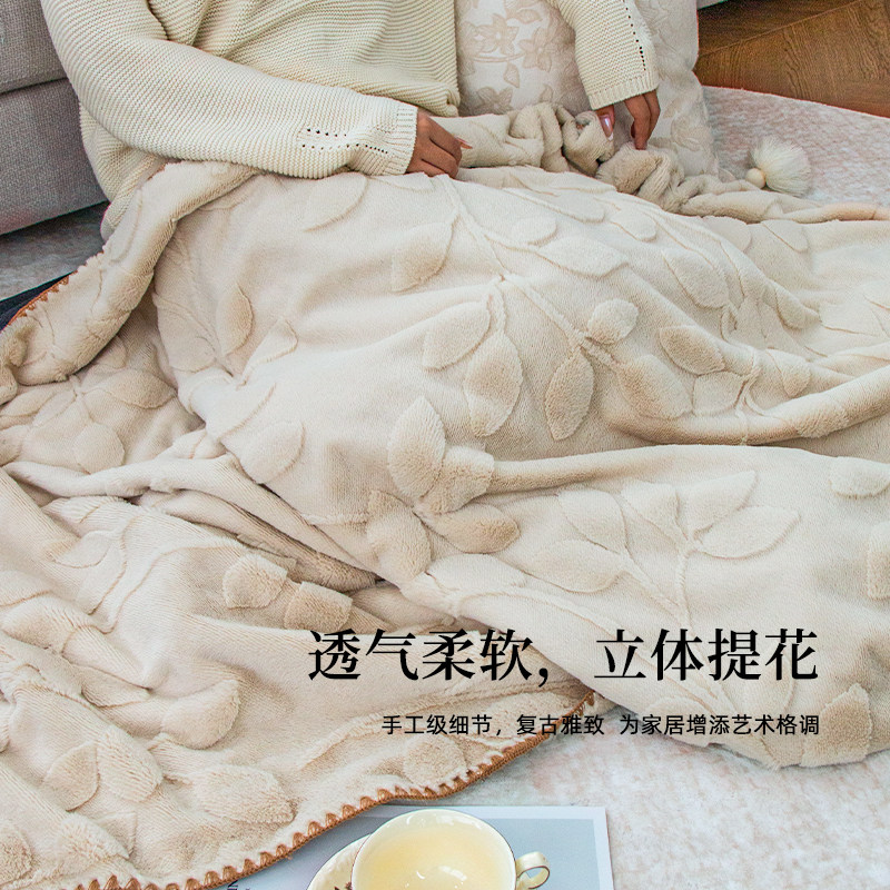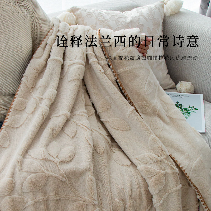 淘轻奢兔毛绒毛毯沙发毯休闲毯子秋冬卧室加厚保暖盖毯空调毯午睡毯