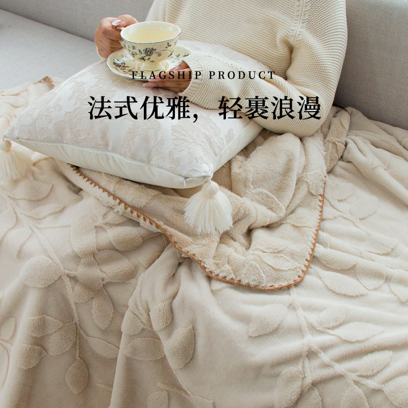 淘宝目野「金絮秋光」法式毛绒毯毛毯高级轻奢感加厚盖毯沙发搭毯家用