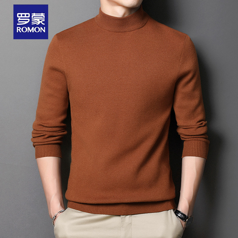 淘宝罗蒙半高领羊毛针织衫男士修身新款本命年红色内搭马年打底毛衣男