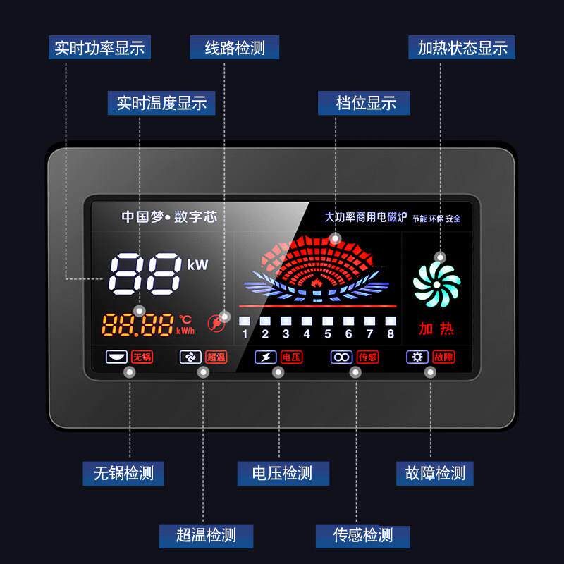 商用电磁炉饭店专用灶台新型电炒锅凹面大功率餐饮厨房设备猛火灶,专为高强度餐饮环境设计,采用优质凹面加热技术,聚能高效,热效率高达90%以上,实现猛火爆炒,满足中餐快炒需求。配备大功率电磁机芯(通常8–20kW),升温迅速、火力精准可控,适应不同烹饪工艺。炉体采用耐高温、抗冲击不锈钢材质,结构稳固,易于清洁维护。具备多重安全保护(过温、过流、干烧防护),保障厨房安全运行。节能环保,无明火、低噪音,改善后厨工作环境。适用于酒店、酒楼、食堂等商用厨房,是现代化餐饮高效烹饪的理想选择。