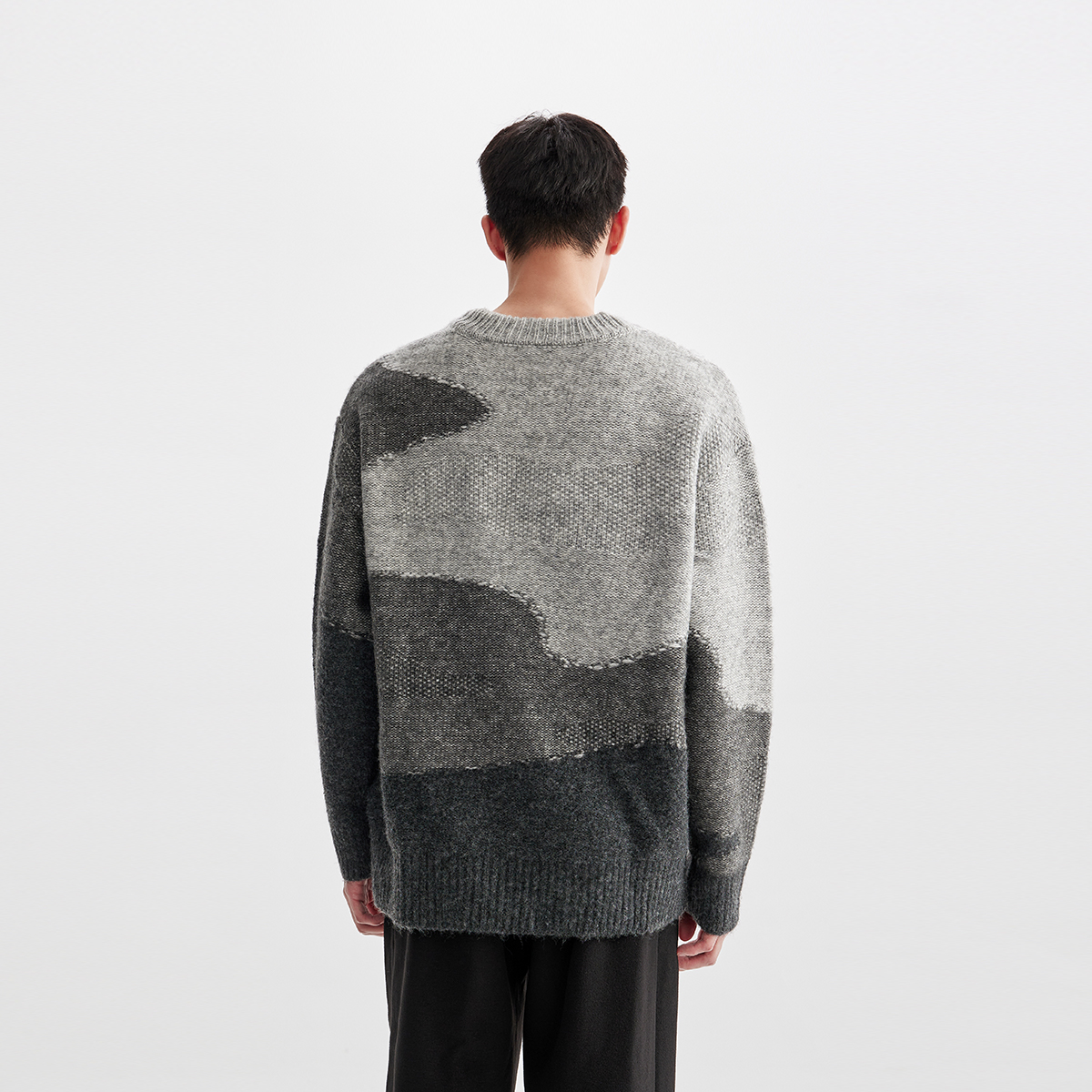淘TOPTIER BRO 复古质感结构剪裁圆领毛衣男秋冬季保暖套头针织衫