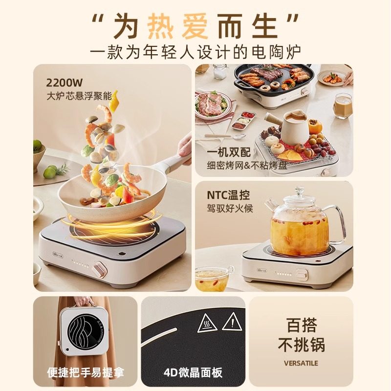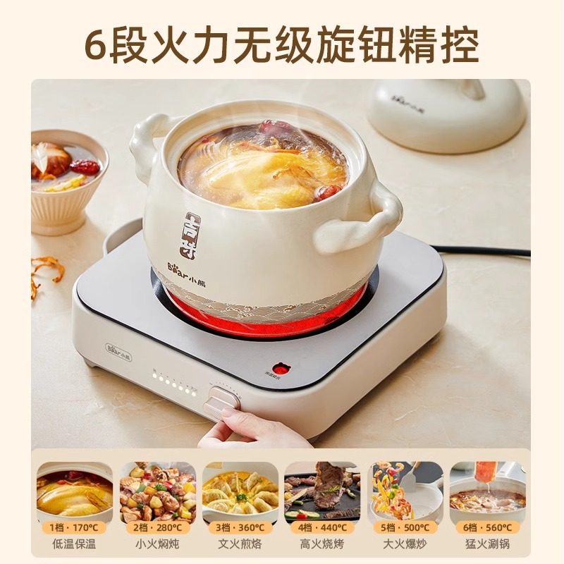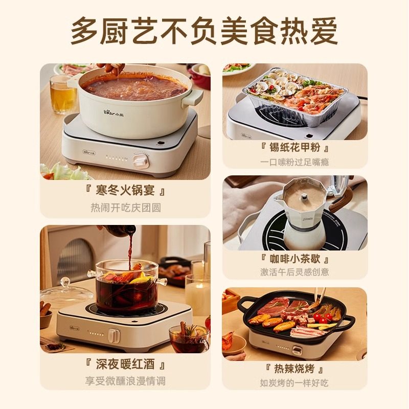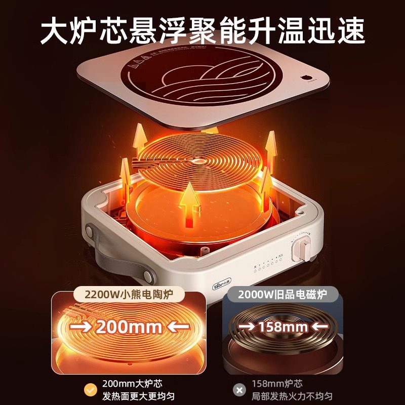 小熊电陶炉围炉煮茶家用多功能大功率煮茶器,集煮茶、爆炒、炖煮于一体,满足现代家庭多样化烹饪需求。采用高效电陶发热技术,功率强劲,加热均匀迅速,支持多档火力调节,无论是文火慢煮茶汤,还是猛火爆炒菜肴,都能轻松应对。炉面耐高温、易清洁,适配各种锅具,使用安全便捷。简约时尚设计,小巧不占空间,适合居家、办公室或户外围炉煮茶场景。配备过热保护与防滑脚垫,使用更安心。小熊电陶炉不仅是一款实用厨电,更是营造温馨茶时光的理想伴侣,让传统围炉文化融入现代生活,享受慢煮慢品的雅致乐趣。