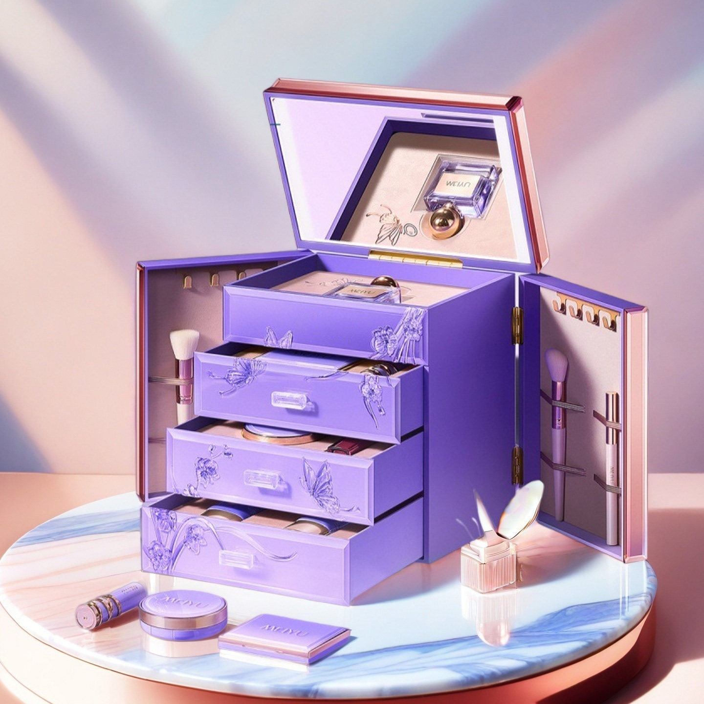 七夕情人节彩妆套装礼盒,专为表达浓情蜜意而设计。精选正品优质化妆品,涵盖口红、眼影、腮红、粉底等全套彩妆组合,色彩丰富、质地细腻,轻松打造浪漫约会妆容。礼盒包装精美典雅,融合七夕鹊桥元素,寓意爱意绵长,是送给女友的贴心之选。无论是日常通勤还是节日约会,都能让她绽放迷人光彩。作为生日礼物或情人节惊喜,既实用又充满仪式感,传递你的用心与爱意。让这份满载心意的彩妆礼盒,成为她梳妆台上最温暖的回忆,见证你们甜蜜的爱情时刻。