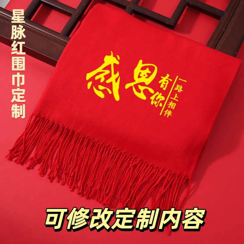 中国红围巾定制印字logo年会同学聚会结婚庆典祝寿祭祖大红色围脖