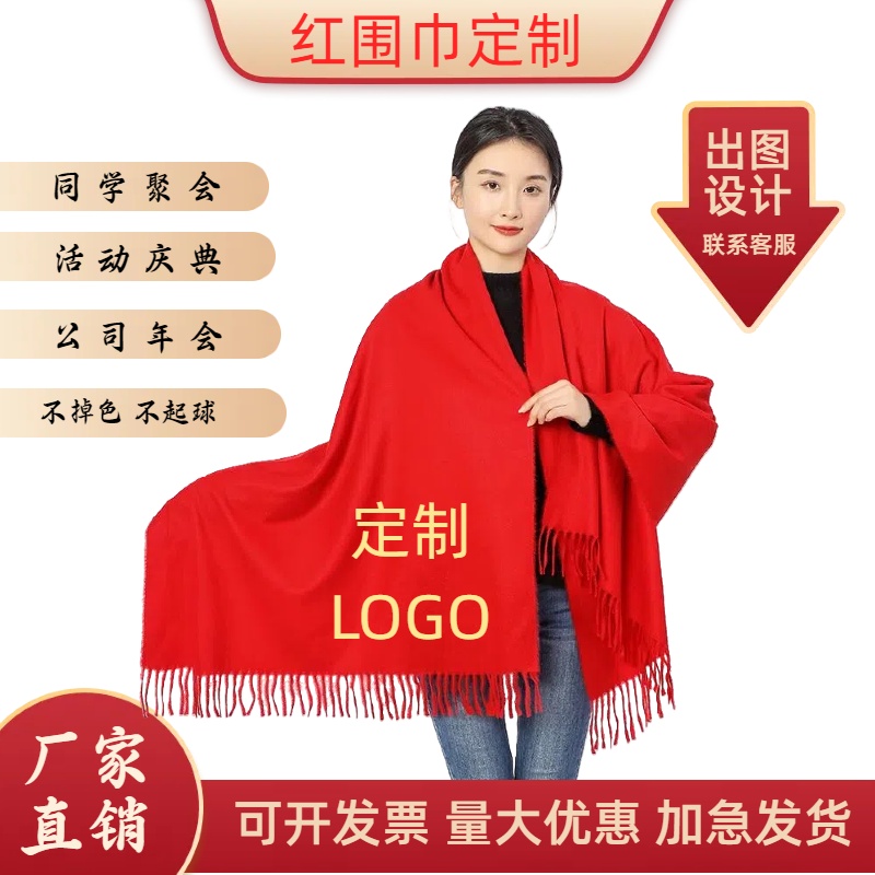 天红围巾定制logo同学聚会过年结婚过寿披肩年会中国红围巾定制刺绣