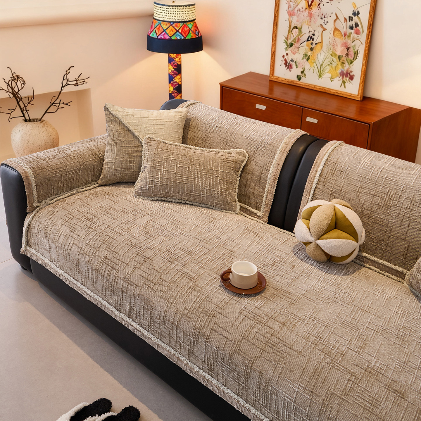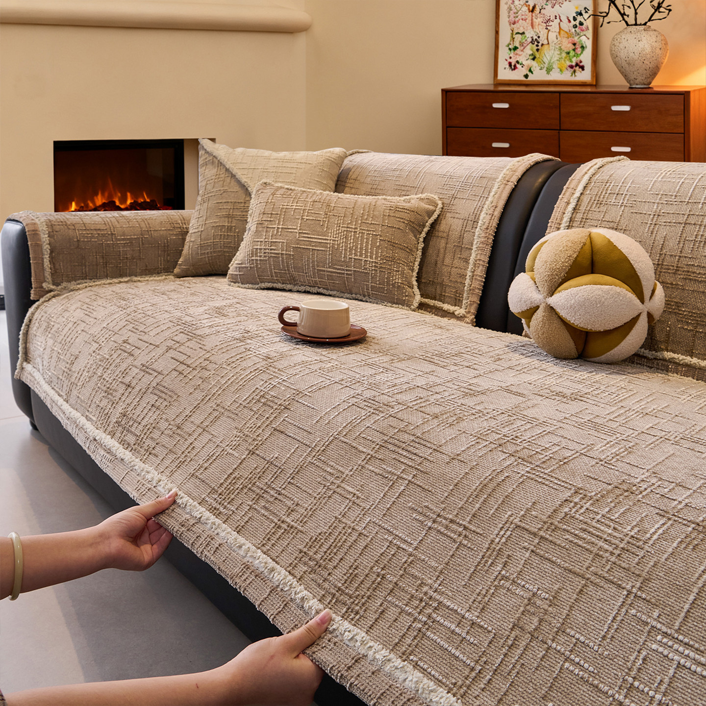 淘雪尼尔沙发垫四季通用防滑坐垫轻奢皮沙发套罩简约现代盖布巾垫子