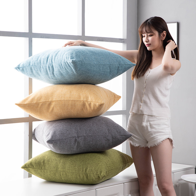 细麻北欧风沙发抱枕客厅靠垫纯色仿麻护腰靠枕床头靠背靠垫抱枕套