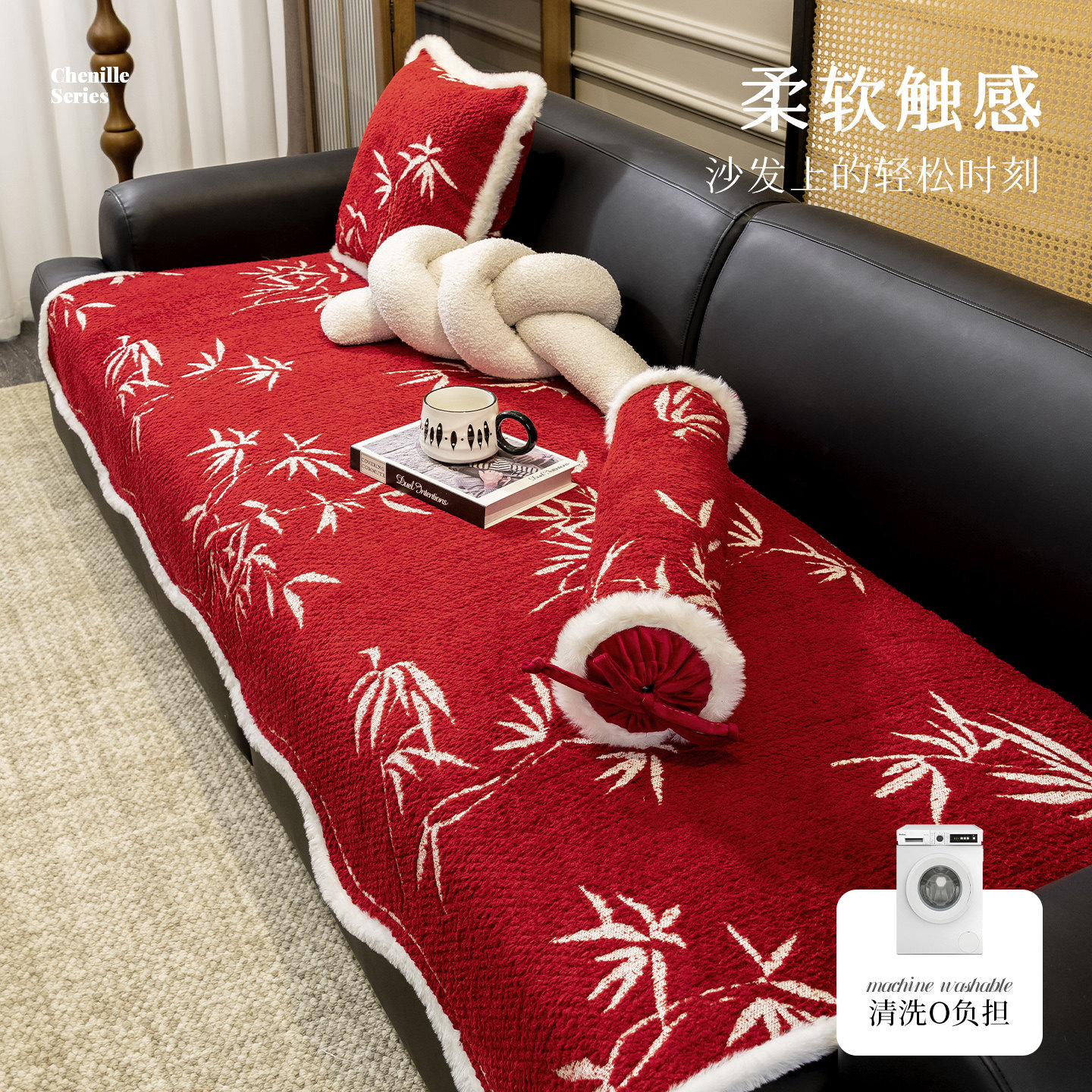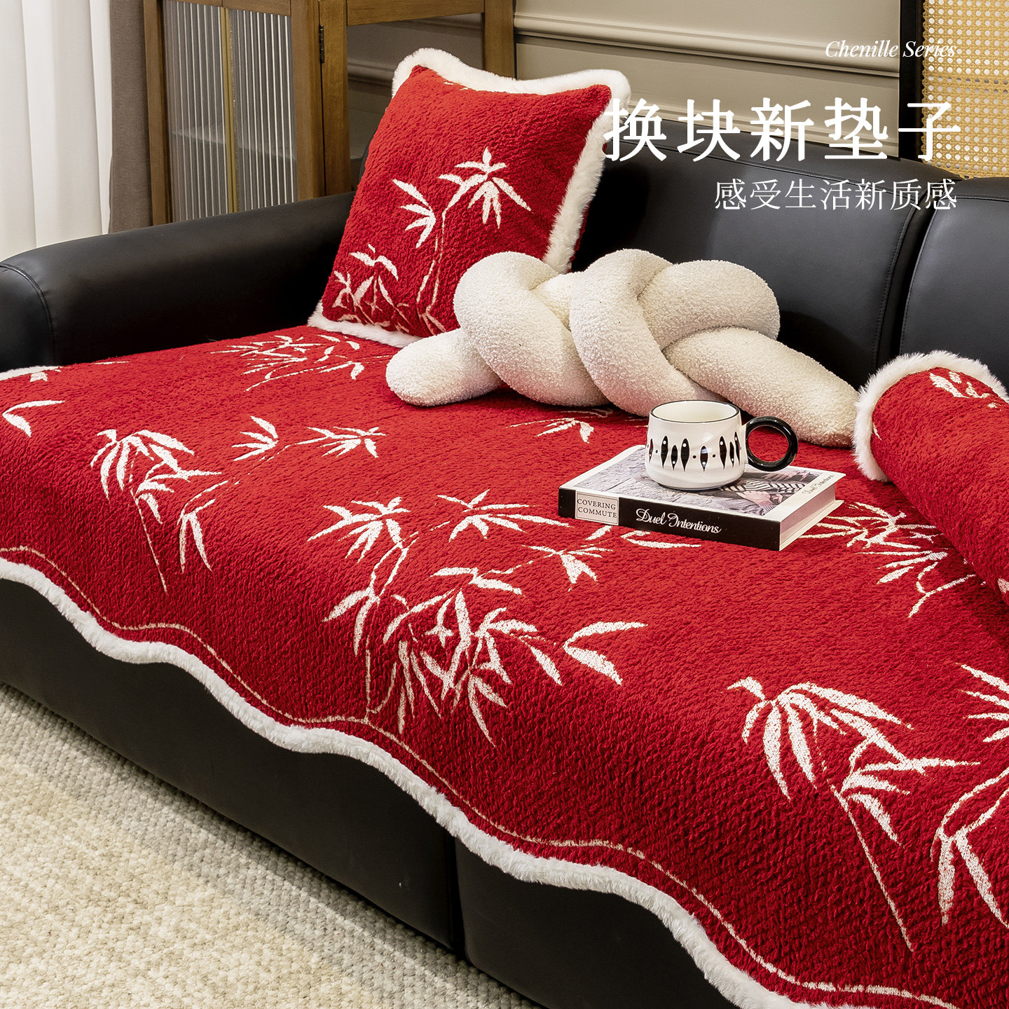 天猫红色异形沙发垫冬季加厚沙发盖布固定防滑喜庆氛围感客厅沙发坐垫
