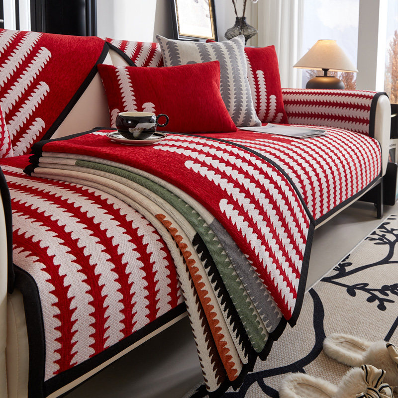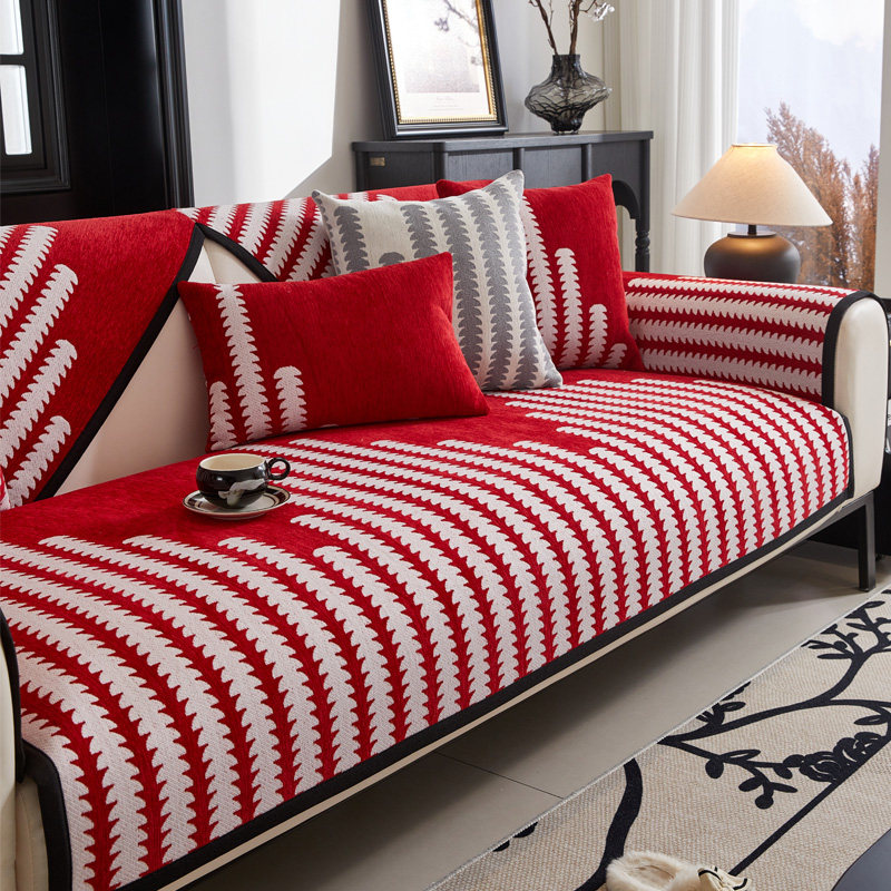 红色异形沙发垫冬季加厚沙发盖布固定防滑喜庆氛围感客厅沙发坐垫