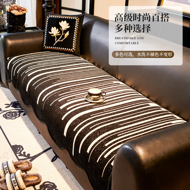 淘雪尼尔沙发垫四季通用防滑坐垫轻奢皮沙发套罩简约现代盖布巾垫子