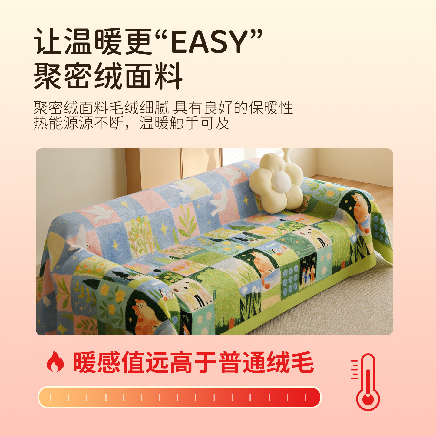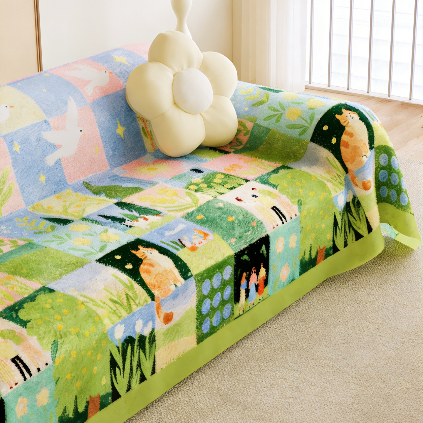 这款卡通田园风沙发盖布,融合温馨田园气息与趣味卡通元素,为冬日家居增添一抹活力色彩。采用柔软亲肤的毛绒面料,触感温暖舒适,有效提升沙发坐感。多巴胺配色明亮愉悦,瞬间点亮居家氛围,带来好心情。底部特别设计防滑颗粒,稳固贴合沙发,不易移位,使用更安心。既是实用的沙发保护套,也是舒适的沙发毯,可铺可盖,四季皆宜。轻松拆卸清洗,打理便捷,让家居生活更省心。无论是客厅、卧室还是儿童房,都能营造温馨又时尚的休闲空间,是提升家居幸福感的不二之选。