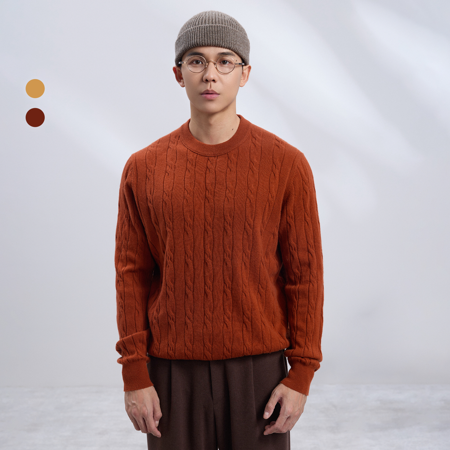 淘宝2色圆领绞花毛衣|255g康赛妮羊绒美丽诺羊毛混纺针织上衣男百搭