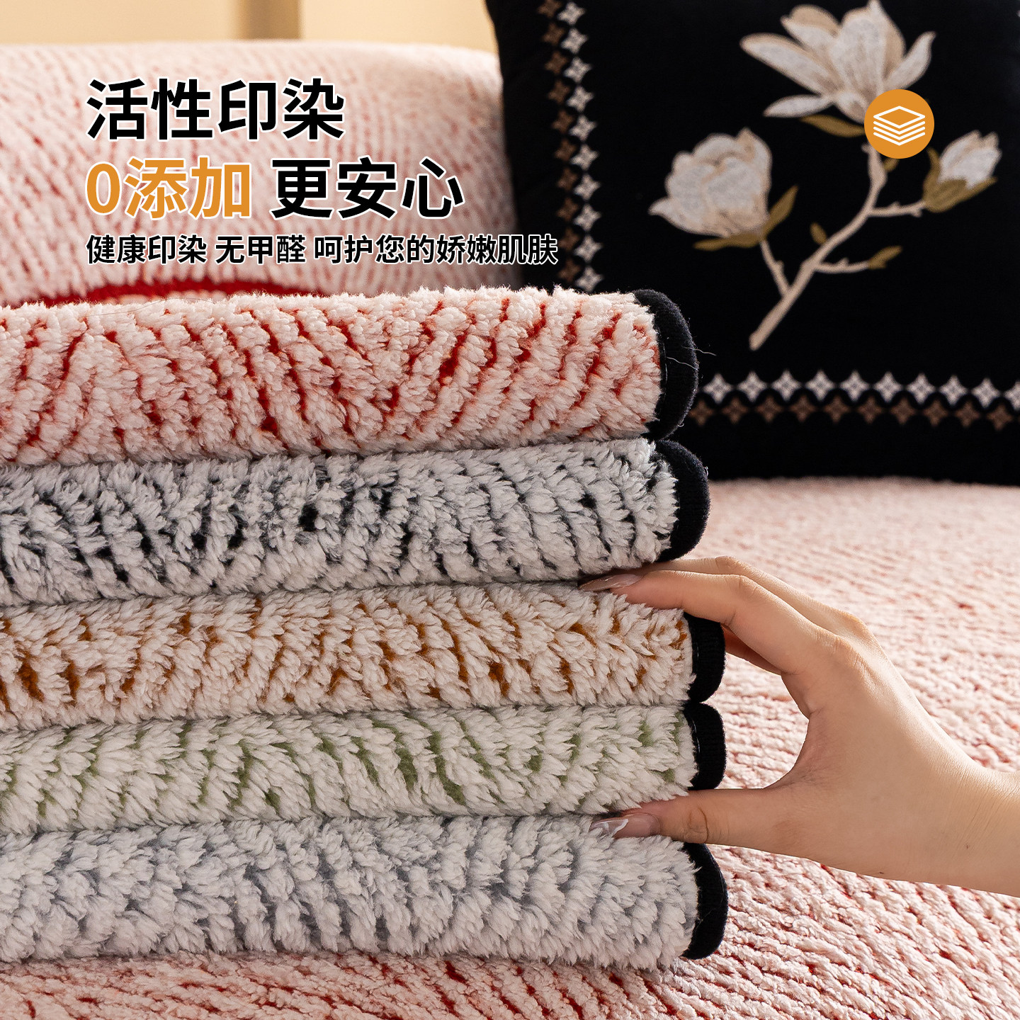 中古风异形毛绒沙发垫冬2025加厚皮沙发坐垫防滑盖布巾高级客厅