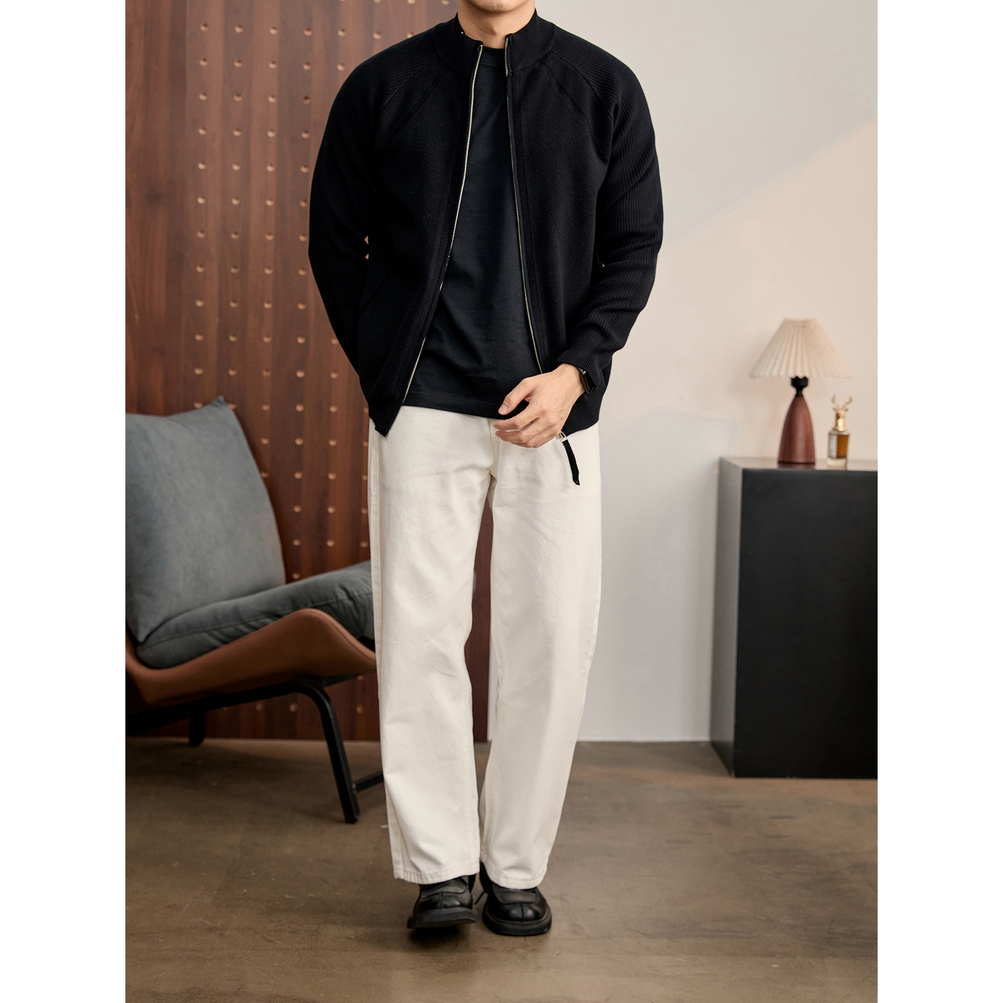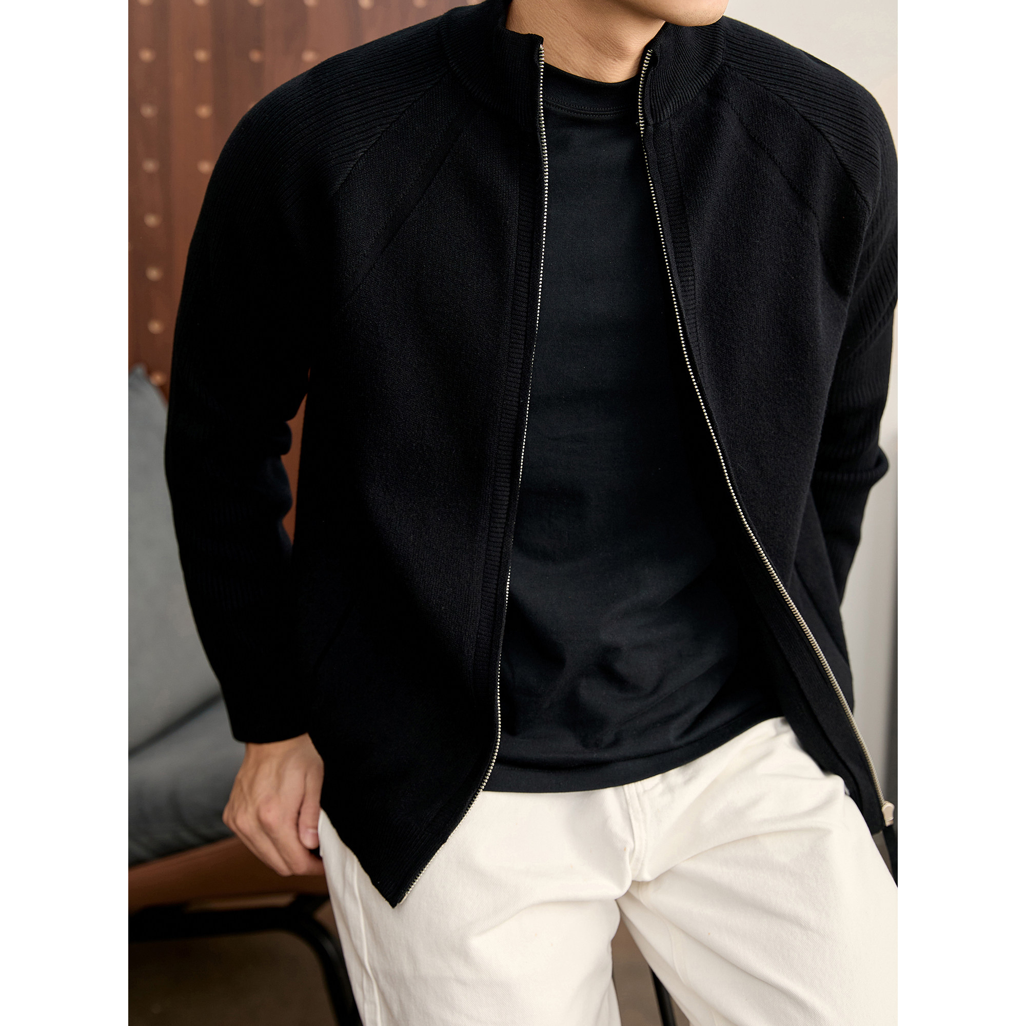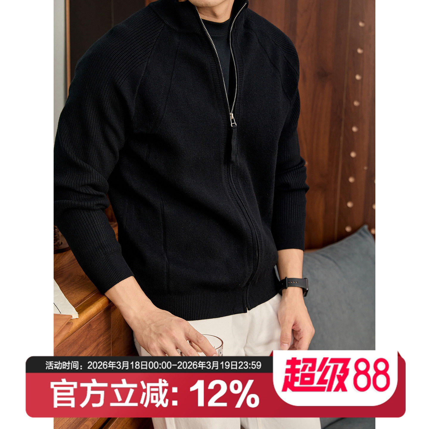 淘宝LUUD 雅奢痞帅男士暗纹肌理针织开衫外套保暖包芯纱拉链立领毛衣