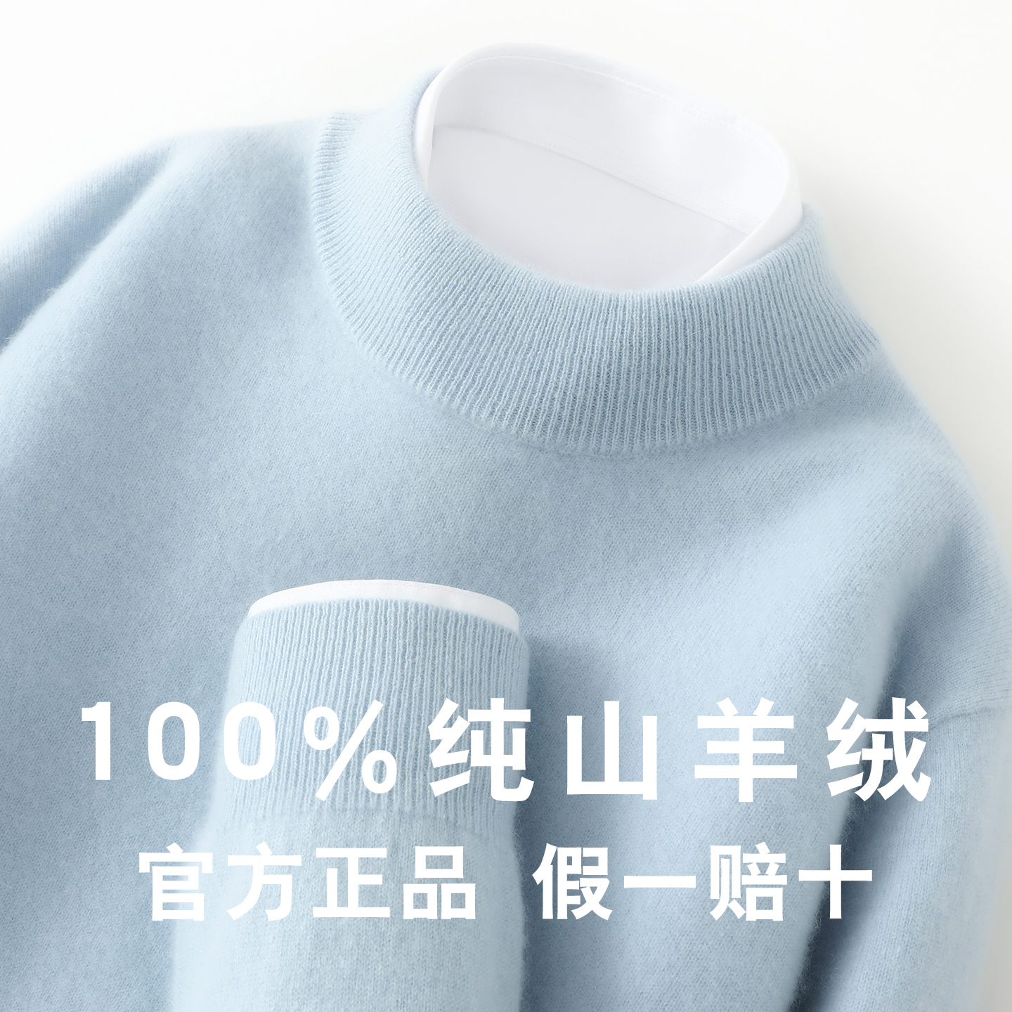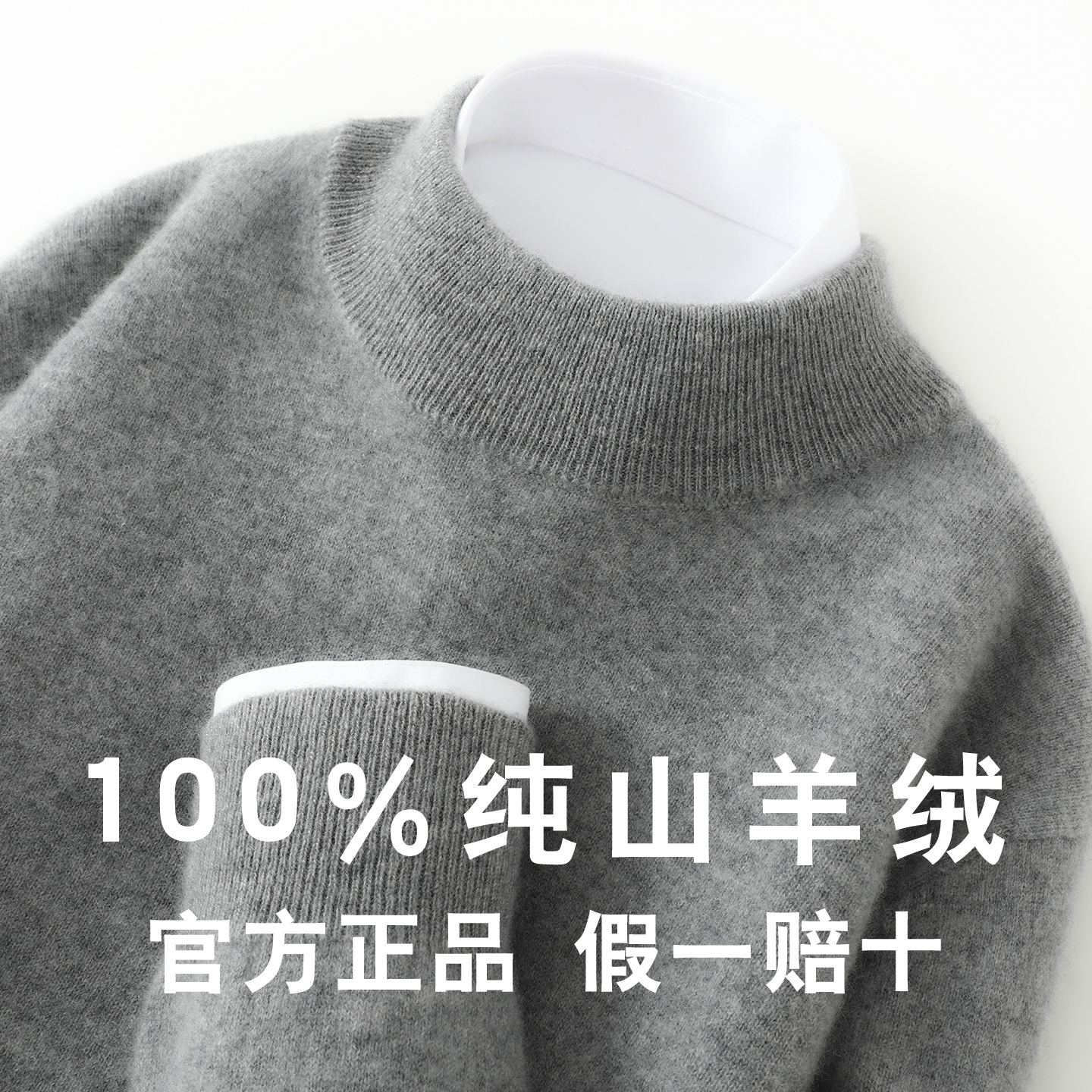淘宝秋冬新款100%纯山羊绒衫男士半高领宽松针织衫毛衣男款保暖打底衫