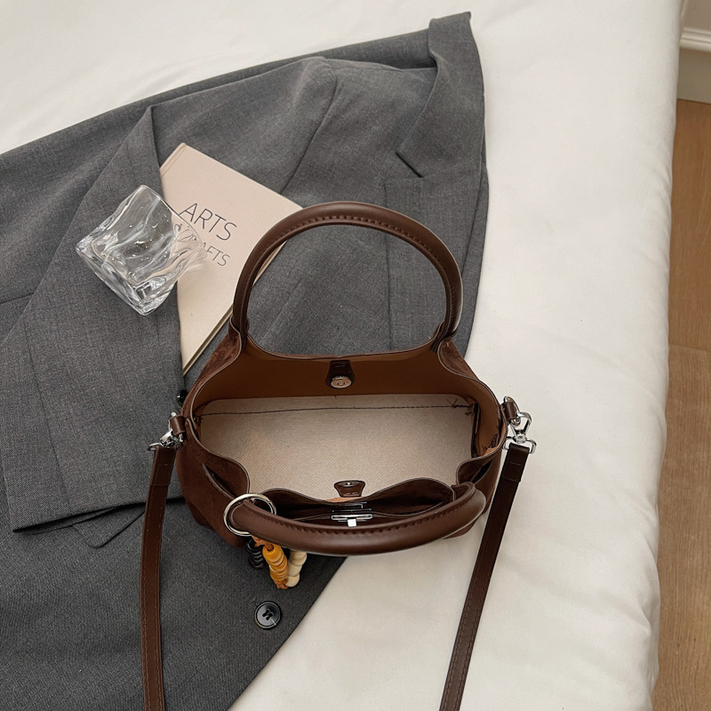 2025秋冬新款复古麂皮绒手提包,以高级质感麂皮绒面料打造,触感细腻,色泽温润,尽显低调奢华。包型小巧精致,兼具手提与斜挎功能,轻松应对日常通勤、约会或休闲出行。复古设计融合现代线条,搭配金属扣饰点缀,提升整体时尚度。内里分层合理,轻松收纳手机、口红、卡包等随身物品。百搭中性色调,轻松驾驭大衣、风衣、针织衫等多种秋冬穿搭,是提升气质的必备单品。无论是职场干练风,还是慵懒复古范,一包搞定,实用与美感兼具,诠释优雅从容的都市女性魅力。